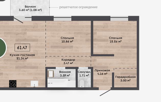 Квартира с кладовой 3.67 м2.