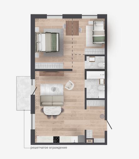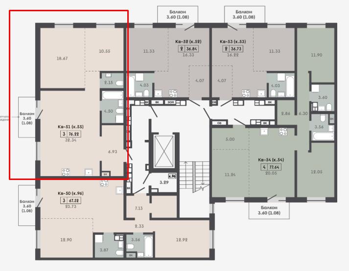 Квартира с кладовой 3.98 м2.