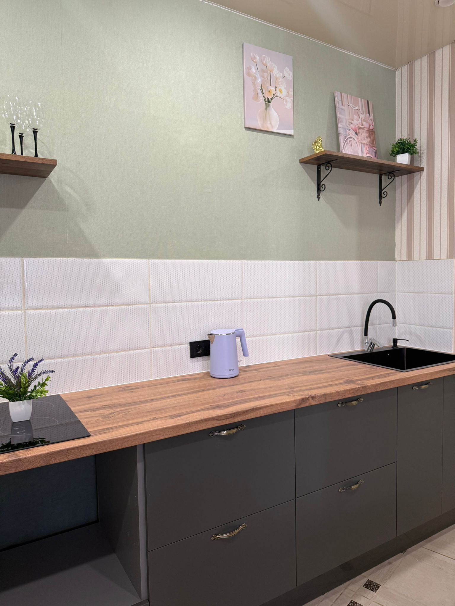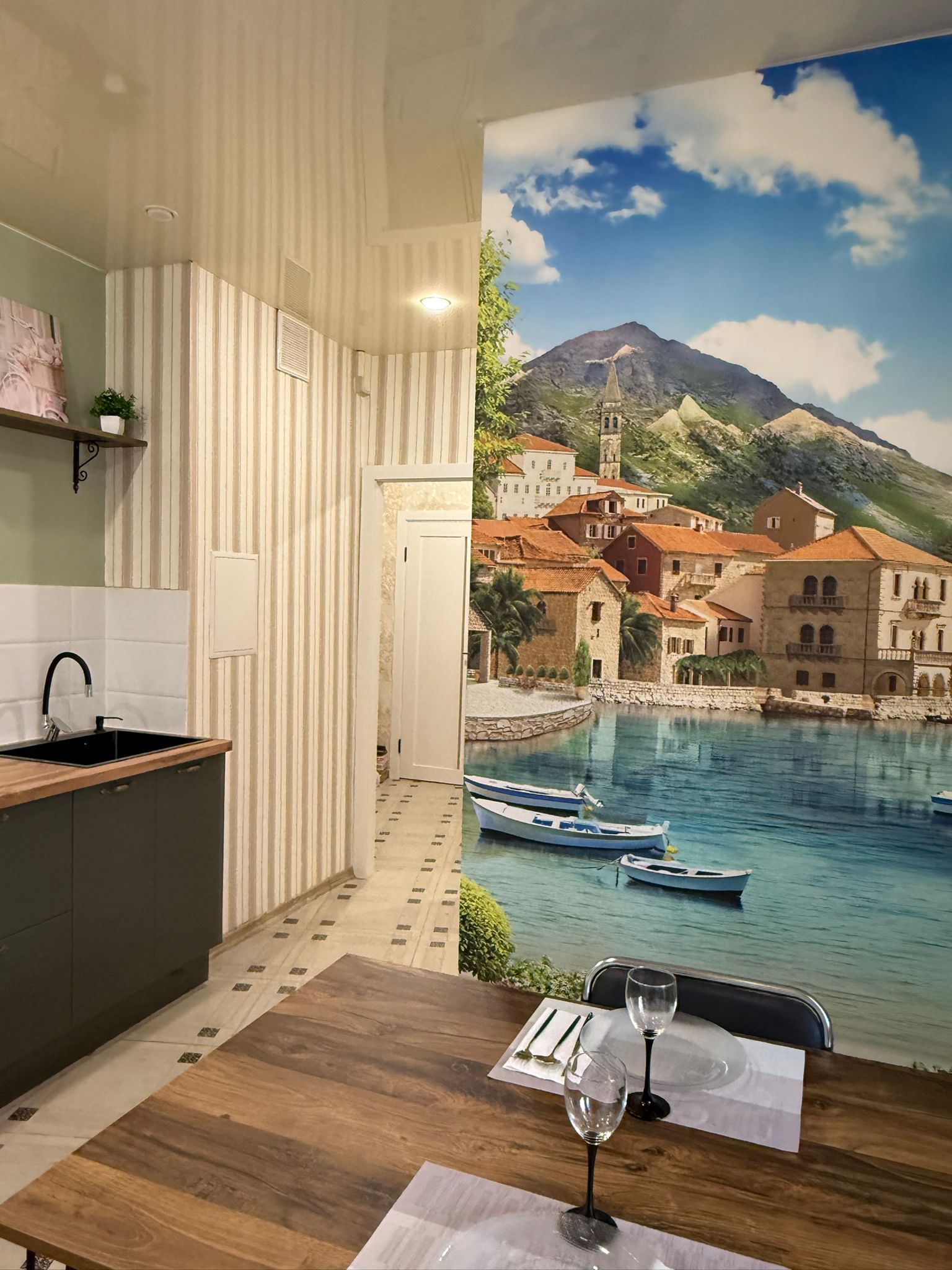 Новая кухня полностью укомплектована всей необходимой техникой и мебелью, имеется отдельная гардеробная комната, которая позволит удобно разместить все вещи, освободив жилое пространство от лишней мебели.