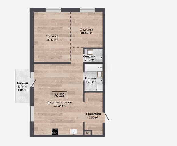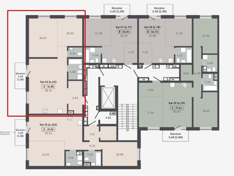 Общая площадь 76.22 м²