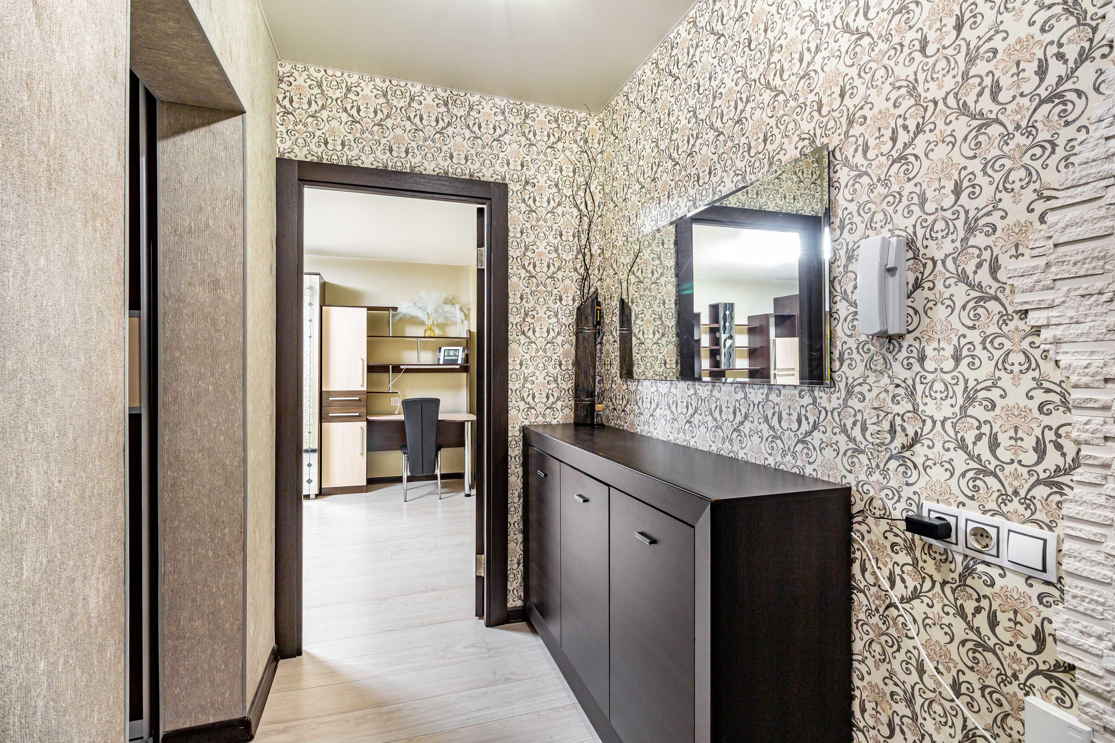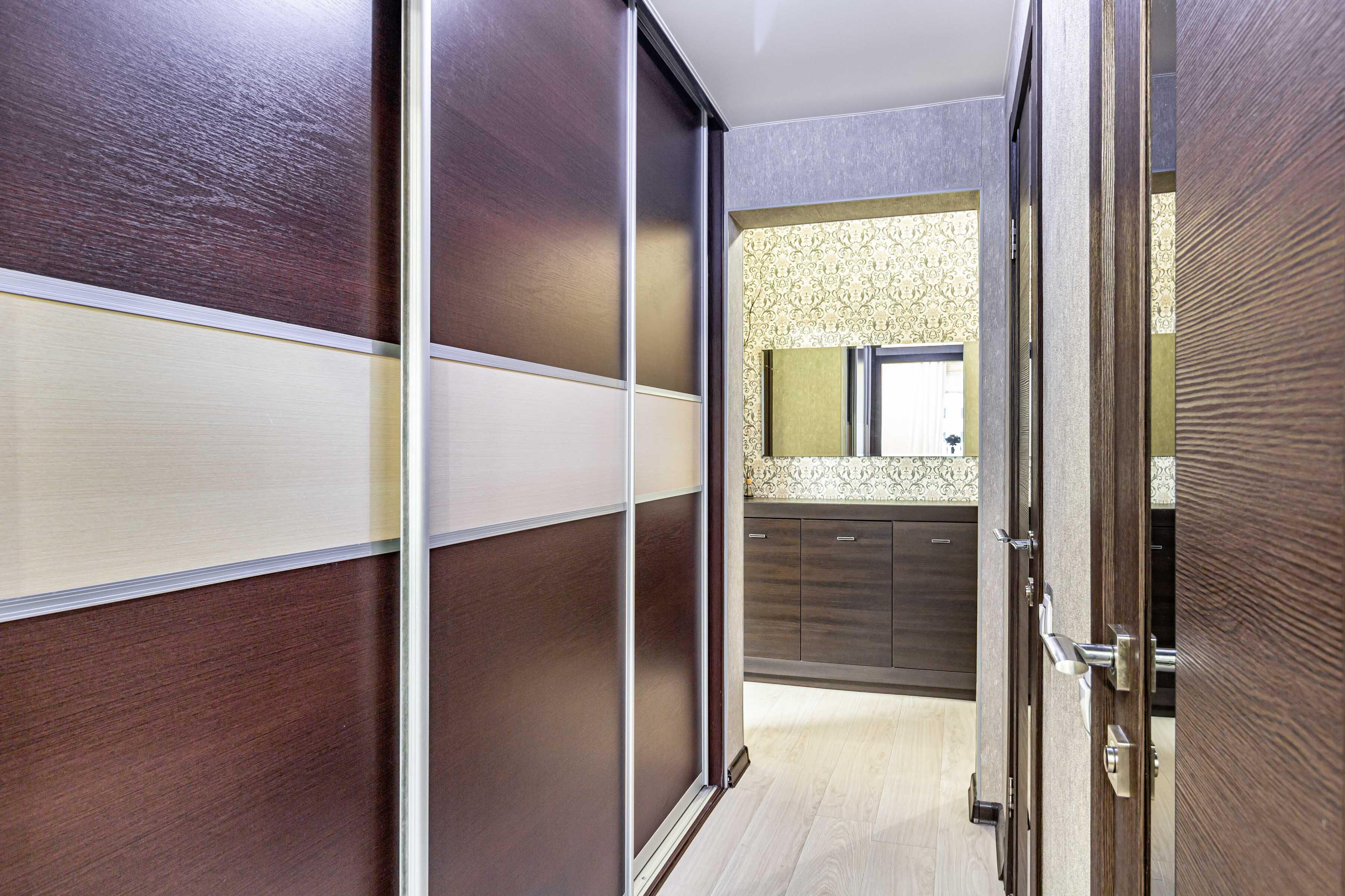 В коридоре установлен вместительный зеркальный шкаф-купе.