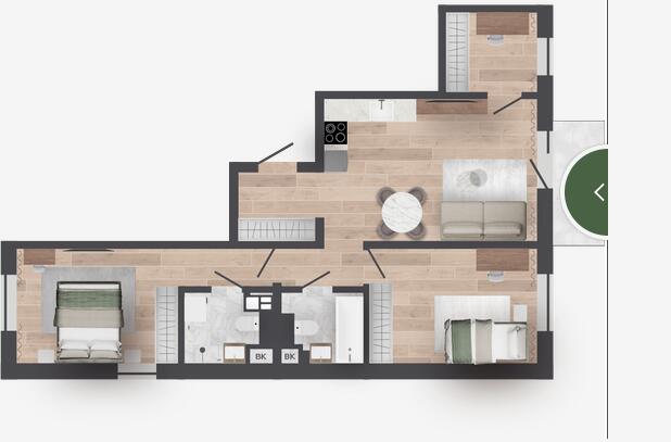 Продуманные планировки: Уникальные квартиры с личными террасами и участками на первом этаже, а также квартиры с мастер-спальнями, гардеробными и кабинетом. Кроме того, для каждой квартиры предусмотрена кладовая в техническом подполье, а для некоторых — кладовые на этажах.