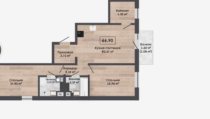 Квартира с отделкой White Box Basic и с кладовой 3.86 м2.