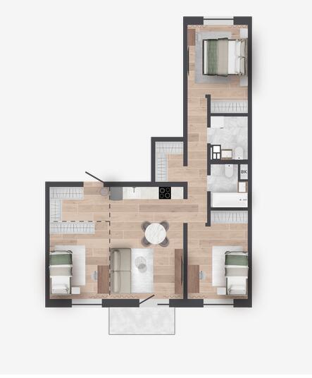 Продуманные планировки: Уникальные квартиры с личными террасами и участками на первом этаже, а также квартиры с мастер-спальнями, гардеробными и кабинетом. Кроме того, для каждой квартиры предусмотрена кладовая в техническом подполье, а для некоторых — кладовые на этажах.