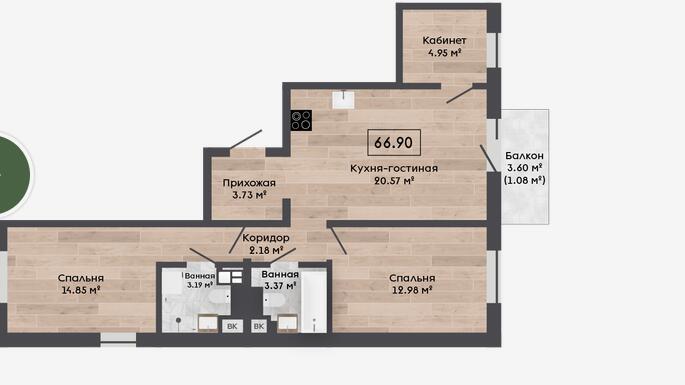 Квартира с отделкой Basic и кладовой 4.02 м2.