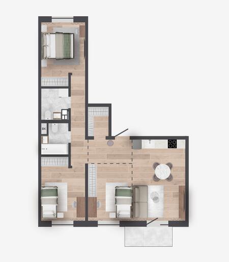 Продуманные планировки: Уникальные квартиры с личными террасами и участками на первом этаже, а также квартиры с мастер-спальнями, гардеробными и кабинетом. Кроме того, для каждой квартиры предусмотрена кладовая в техническом подполье, а для некоторых — кладовые на этажах.