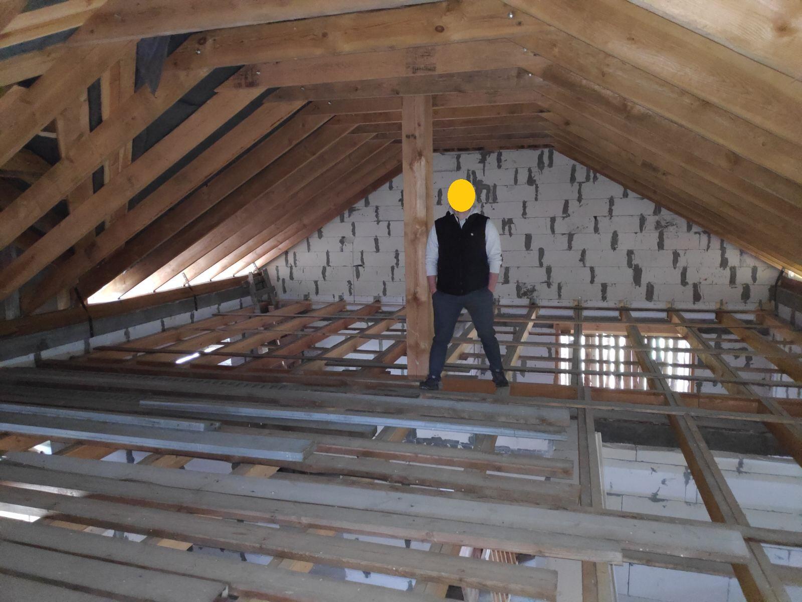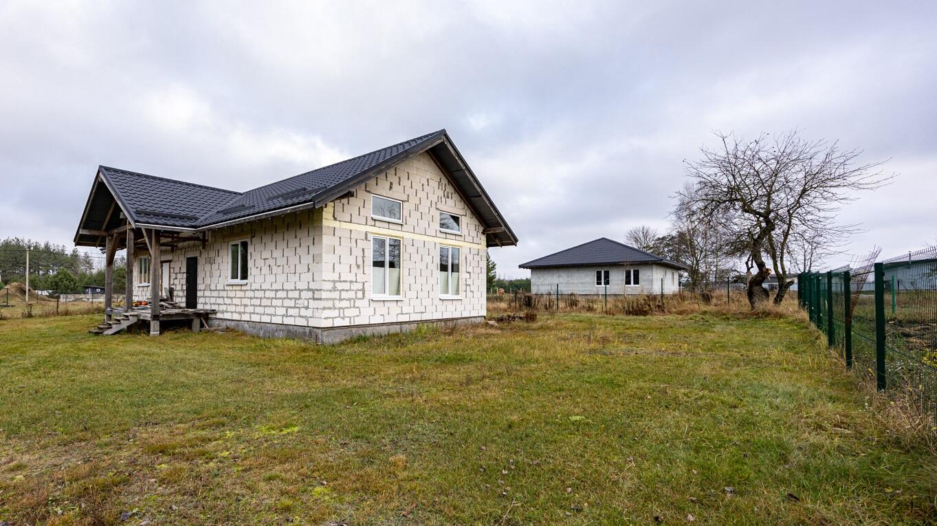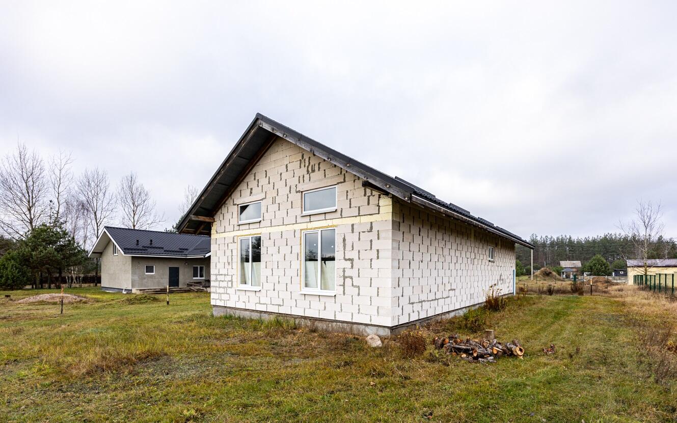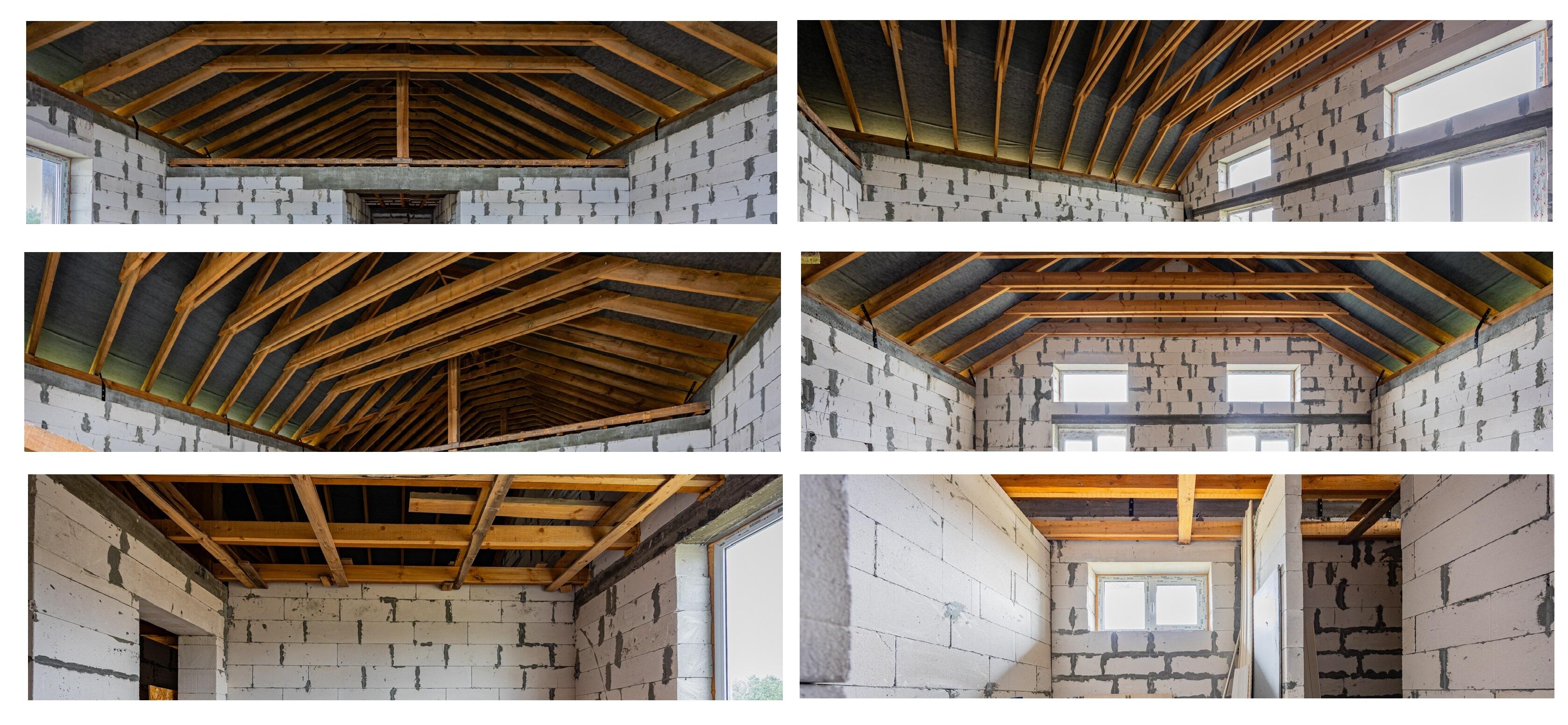 Наружные и внутренние стены дома без отделки. Высота подкровельного пространства позволяет обустройство второго этажа.