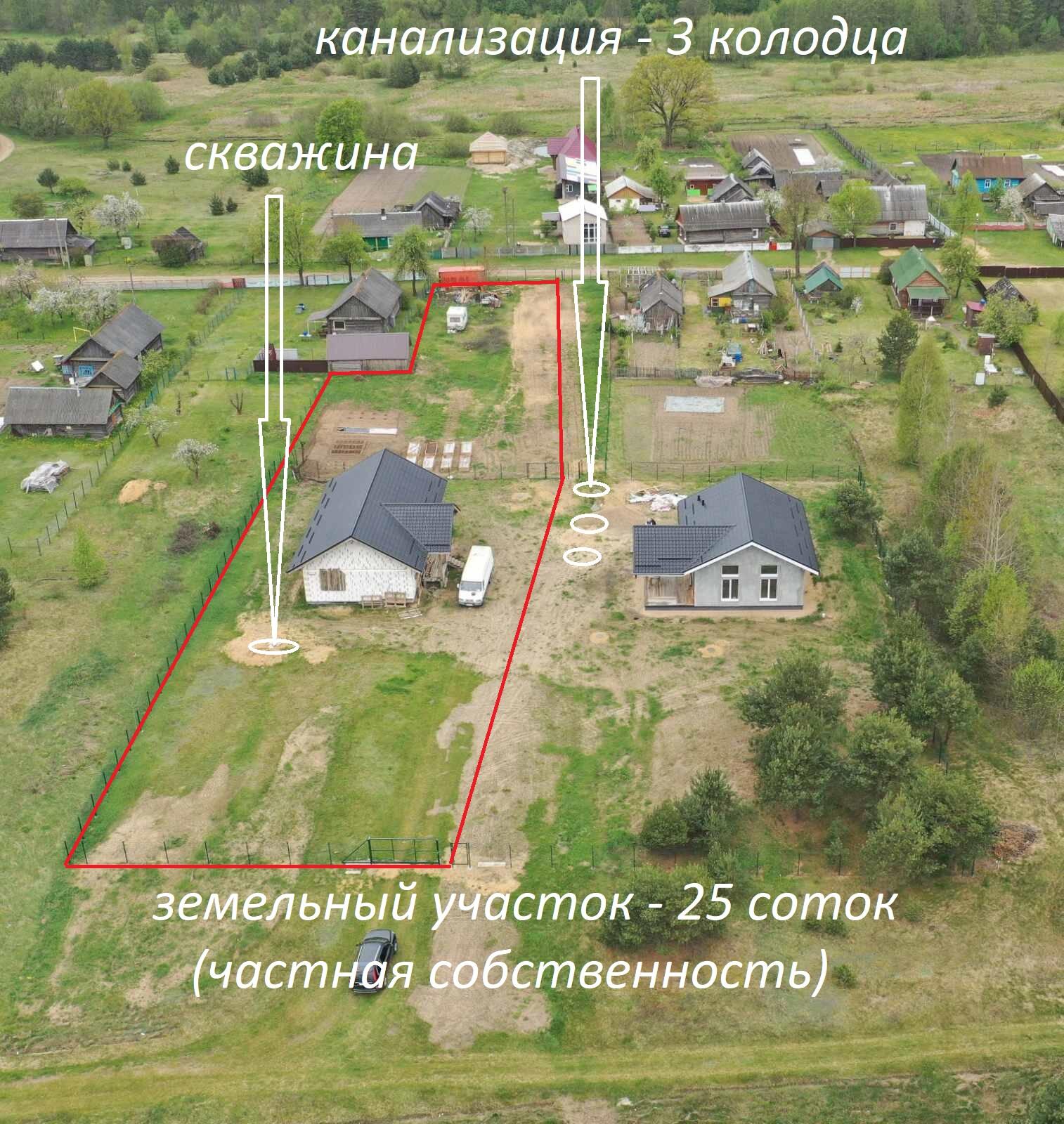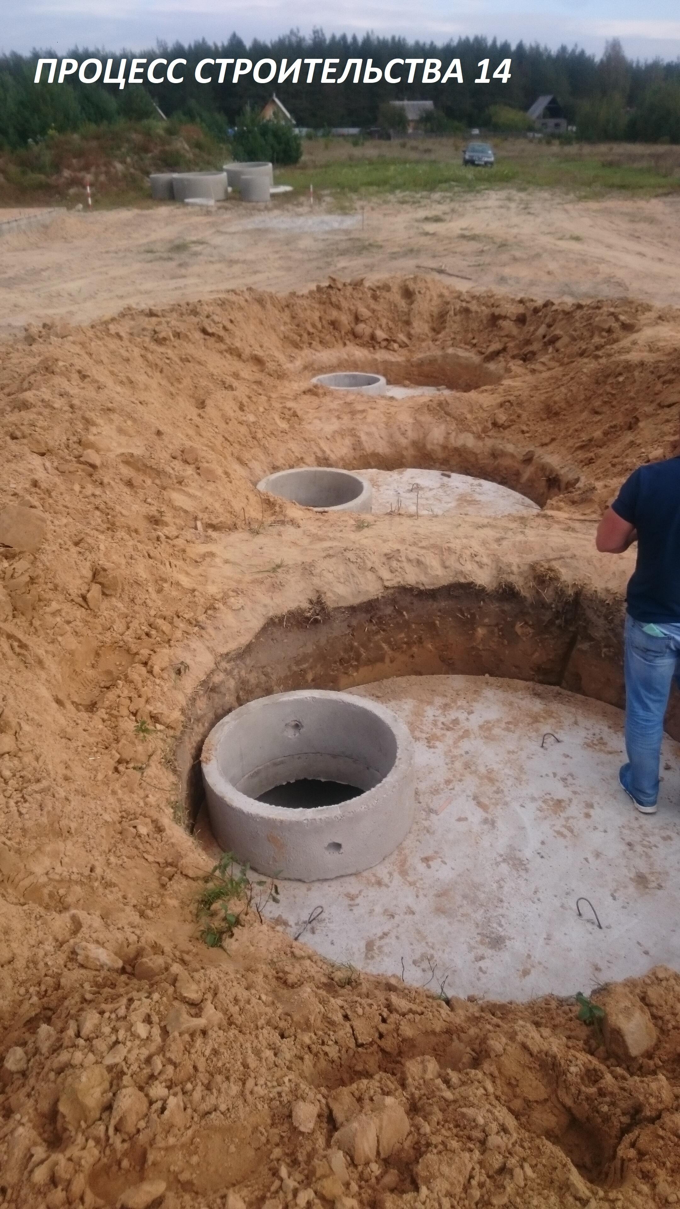 Канализационные выпуски выполнены и подключены к существующим канализационным колодцам. Всего ТРИ канализационных колодца, каждый из которых имеет объем 9 куб.метров (ж/б кольца диаметром 1.5м, глубиной 6 метров). Общий объем канализации - 27 кубометров. Канализацию обустраивали сообща с соседом. (смотреть фото файлы)