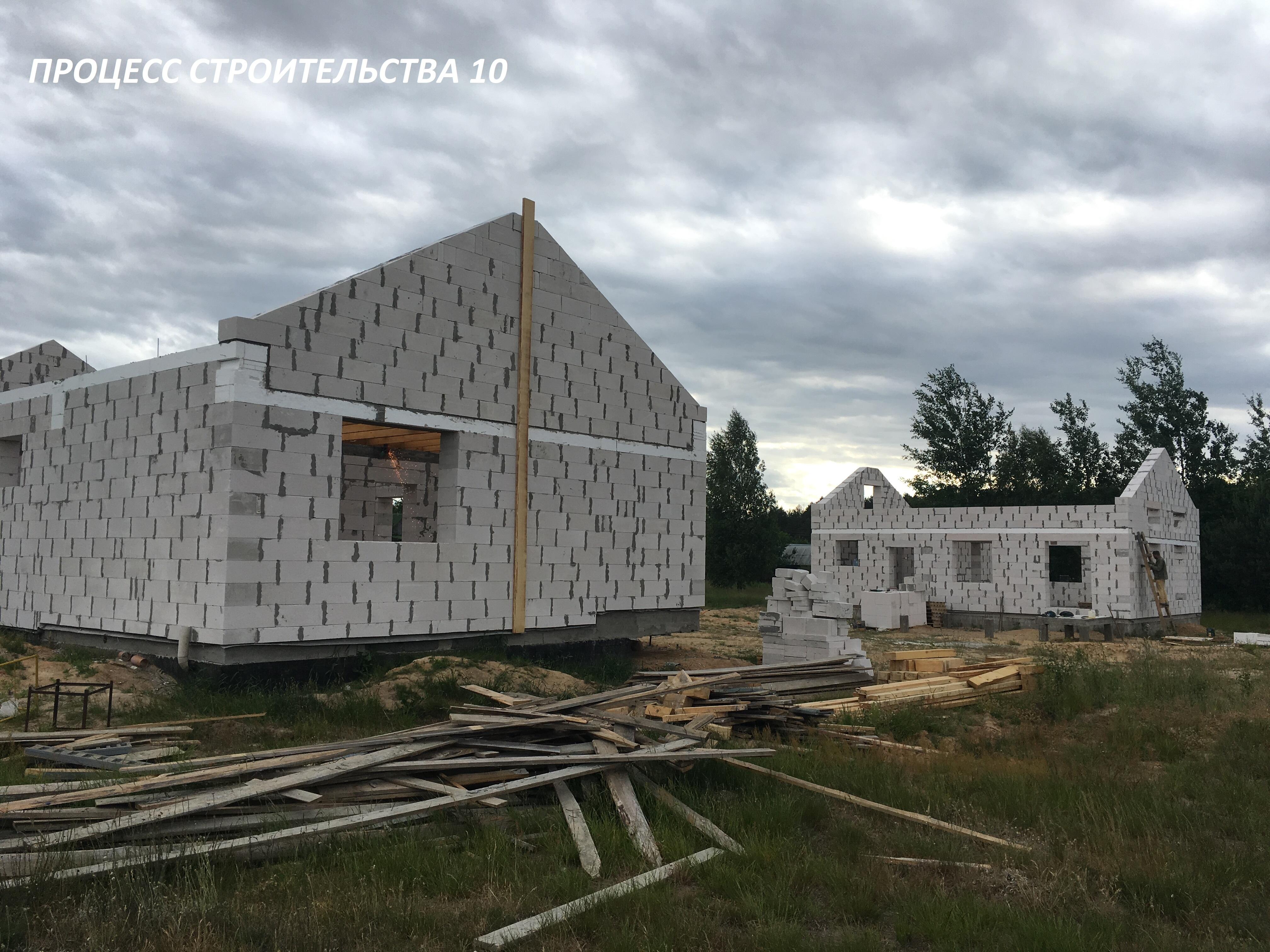 Стены - газосиликатные блоки 40х60. Внутренние перегородки - газосиликатные блоки толщиной 10 см.