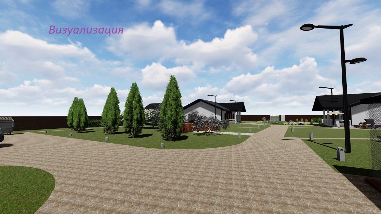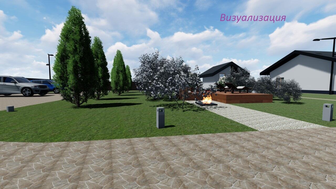 Территория огорожена современным металлическим забором 3D (въездные ворота - откатные).