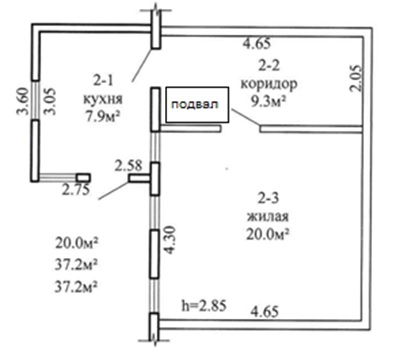 Общая площадь жилого помещения (квартиры), кв. м. - 37.2