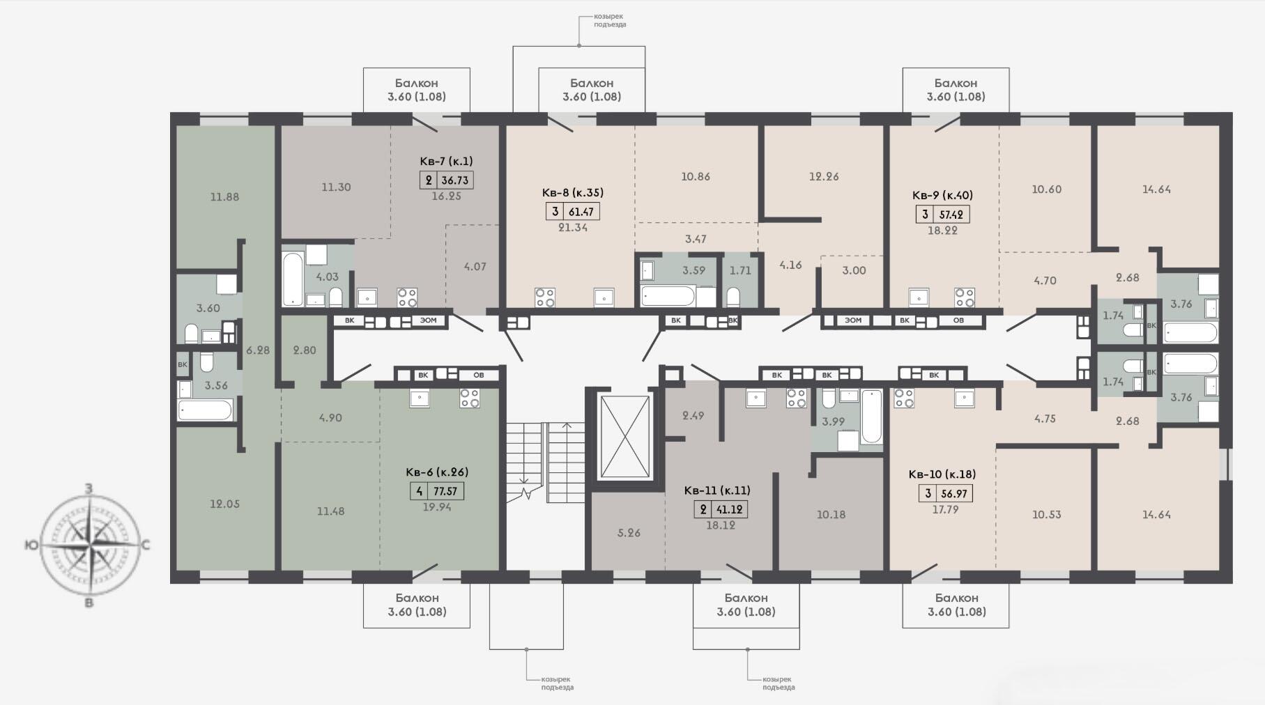 - Балконы - открытые, с панорамным остеклением.