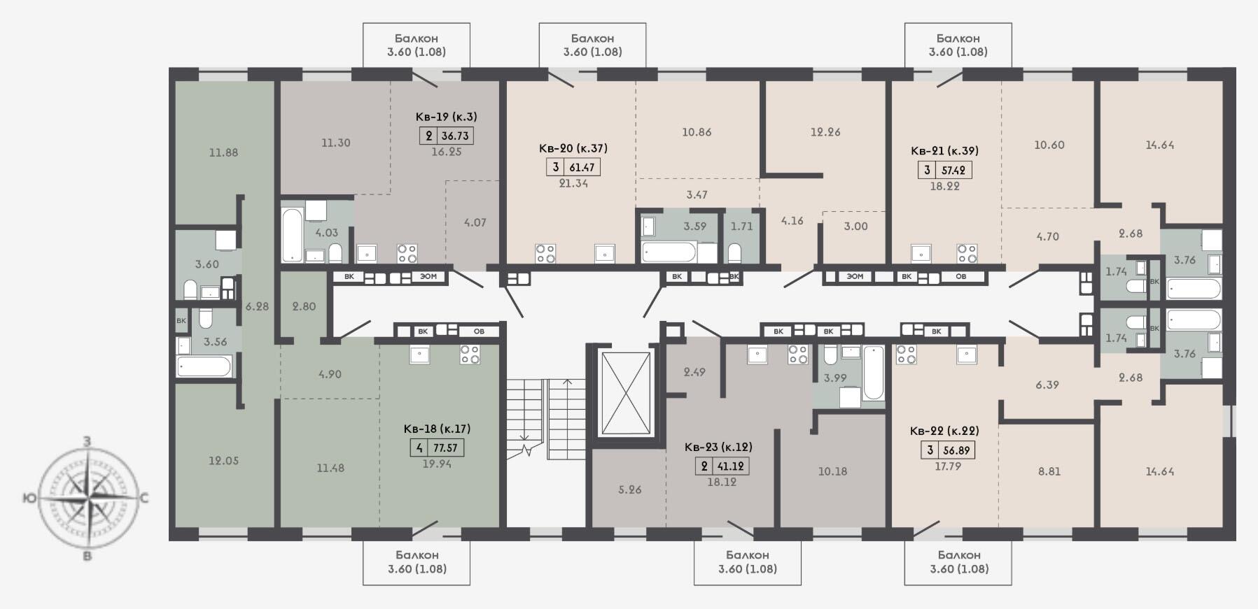 Площадь57.42 м2