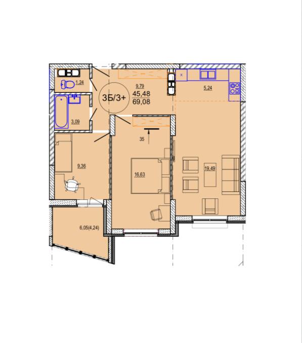 Высота потолков 2,5 м