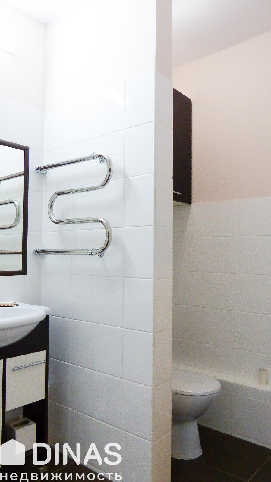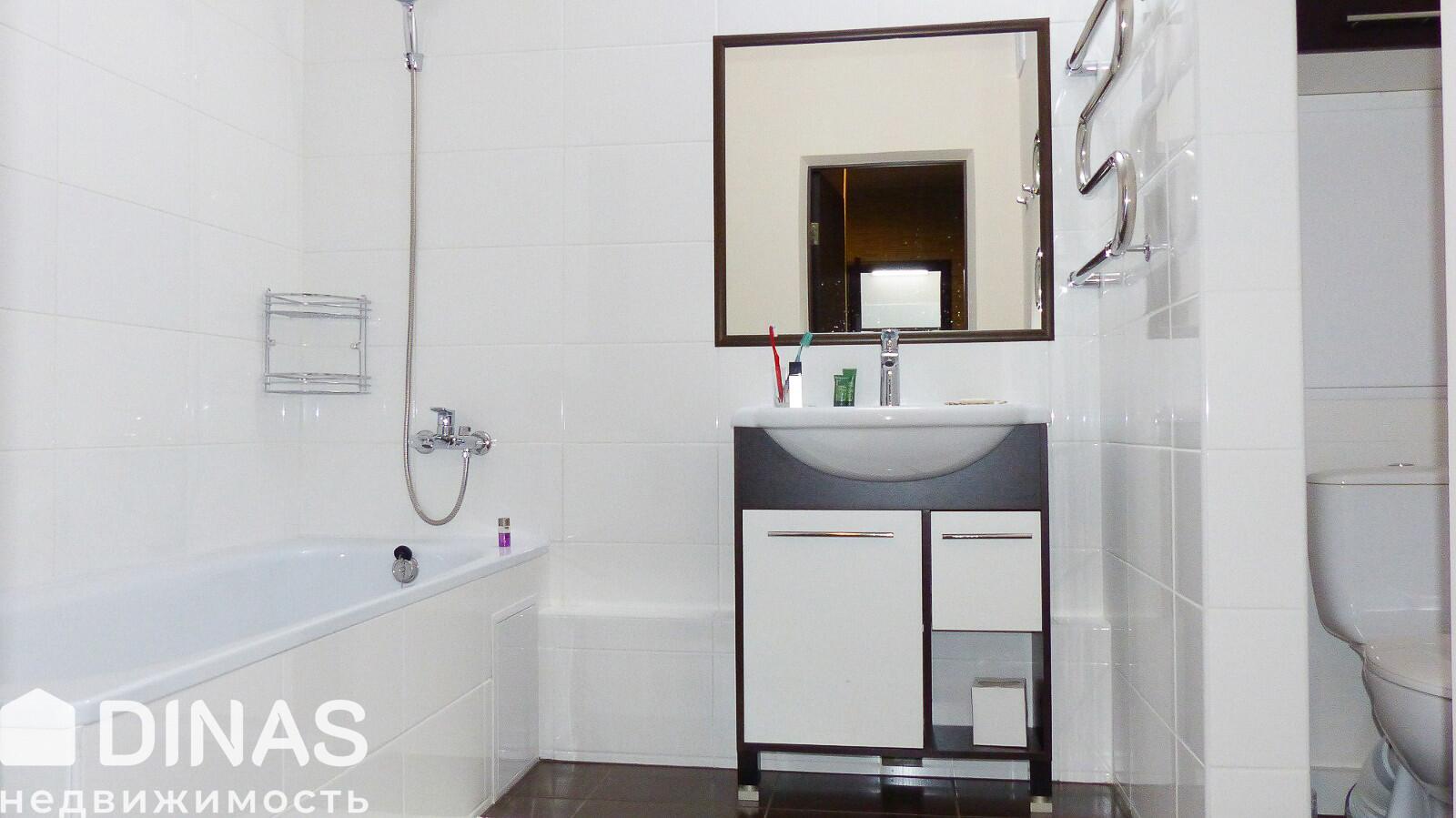 В совмещенном санузле, установлена ванная, стиральная машина, с необходимой мебелью для ванной комнаты. Подключены приборы учёта воды, оптоволоконная связь, домофон. Входная металлическая дверь.