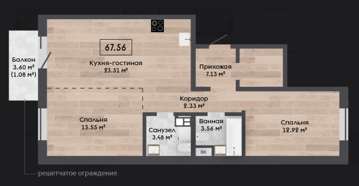 Общая площадь 67.56 м²
