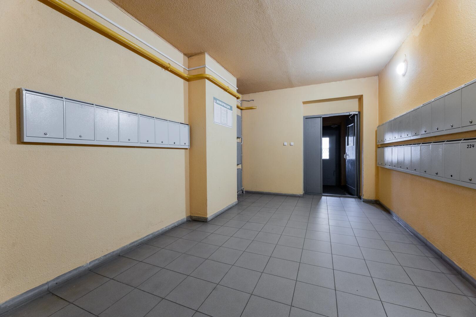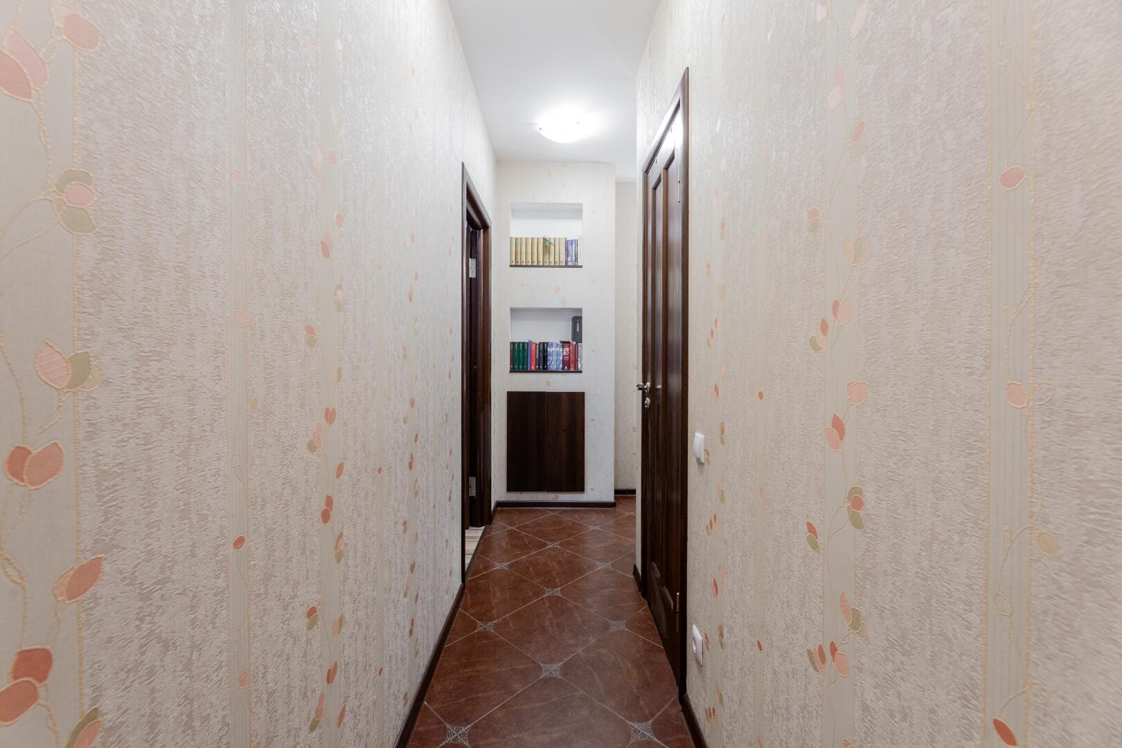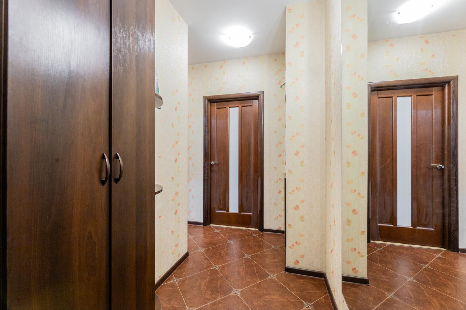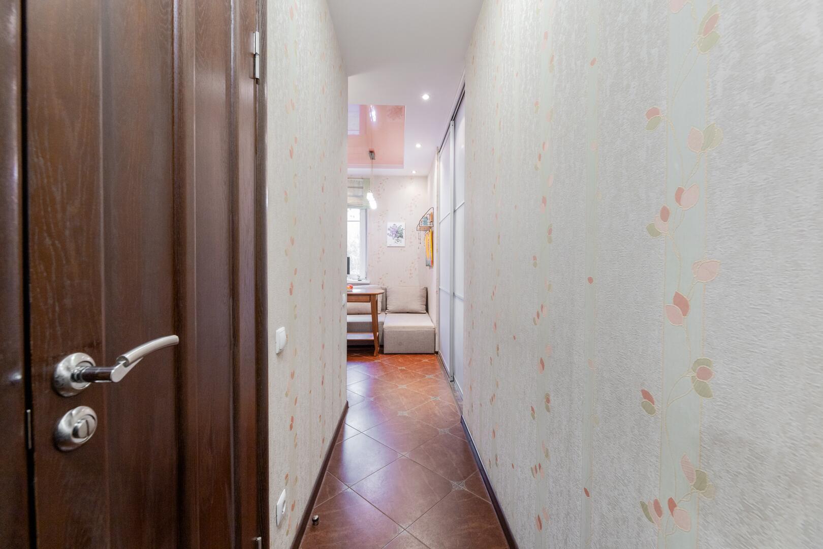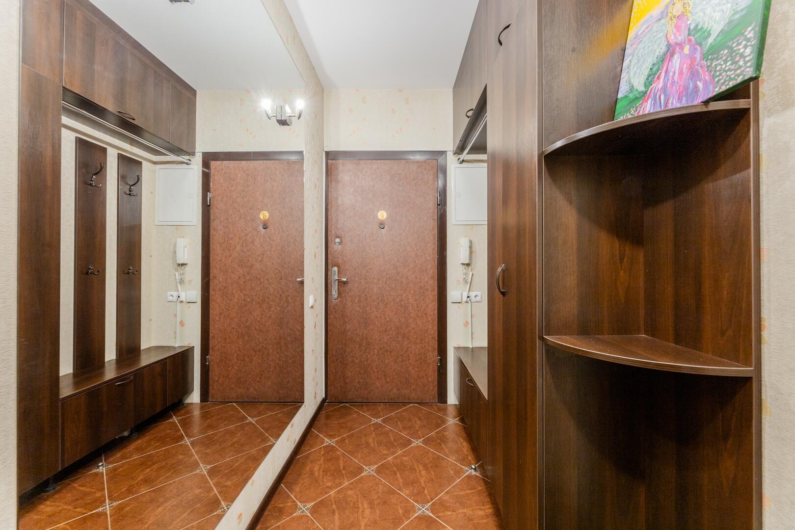 Прихожая и коридор. Оборудован шкаф, большое зеркало во всю стену, отлично расширяющее пространство. Дверь металлическая.