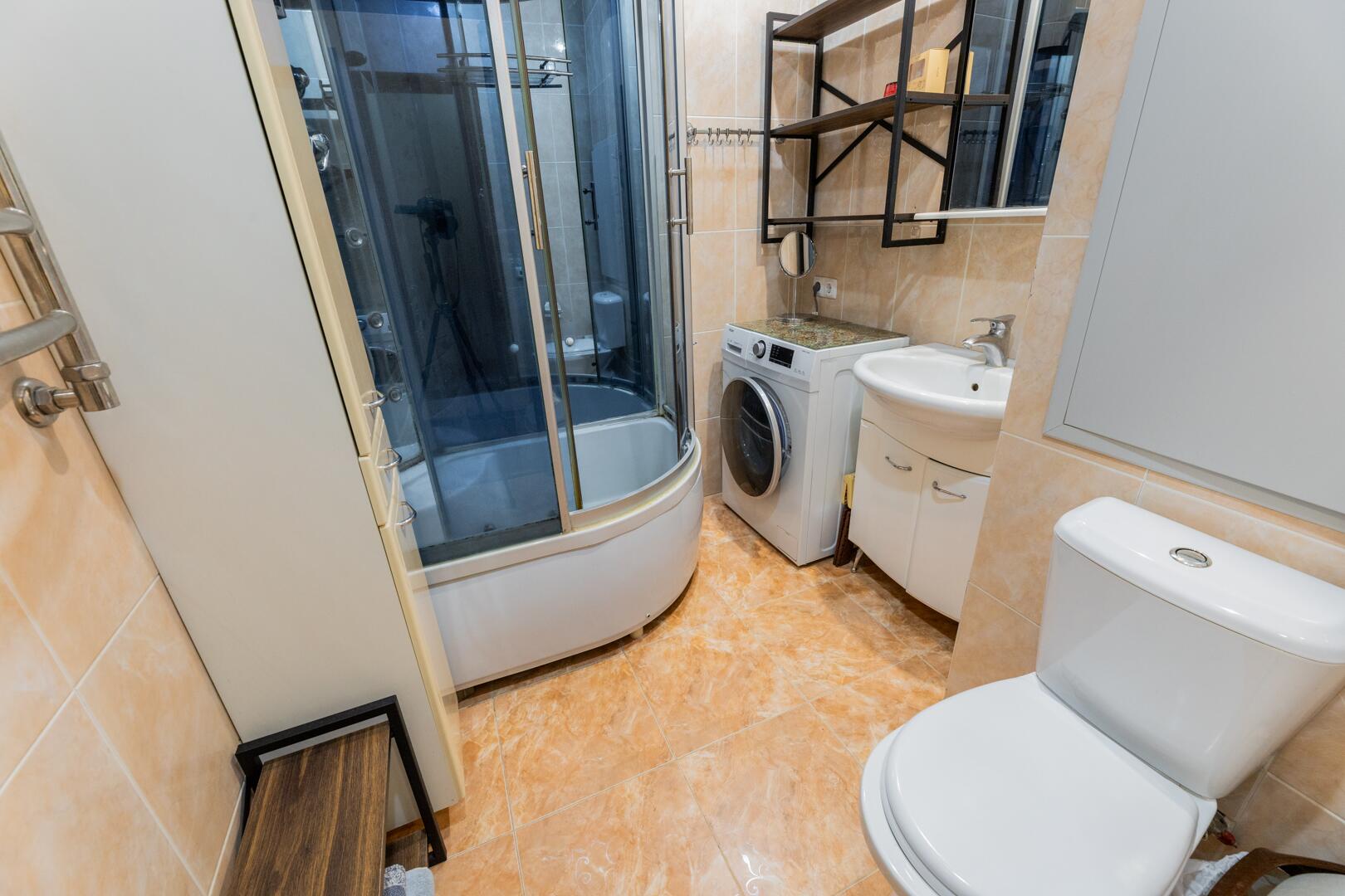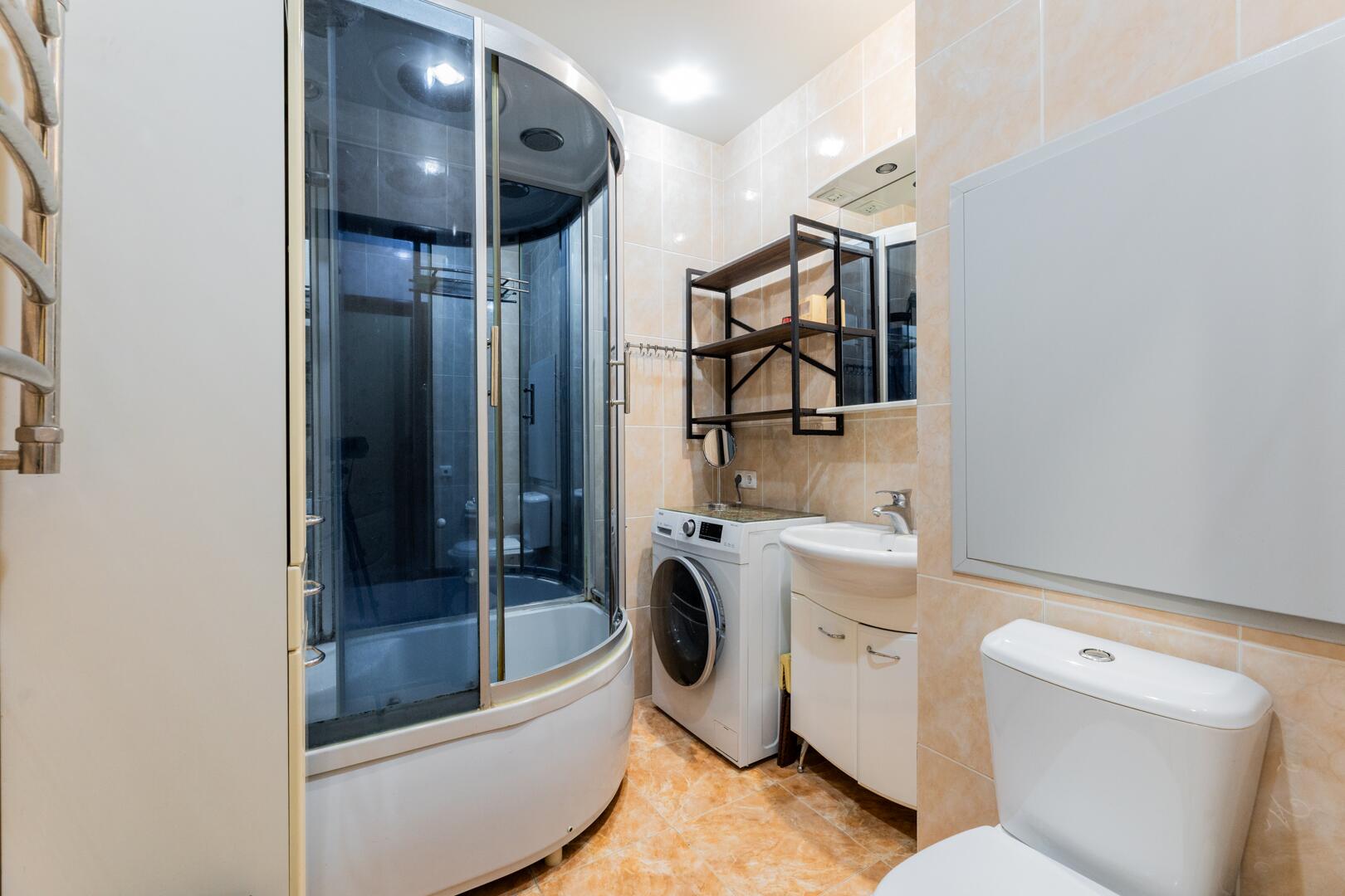 Санузел. Совмещенный, площадью- 3,9м2, установлена душевая кабина, хромированный змеевик, стиральная машина.