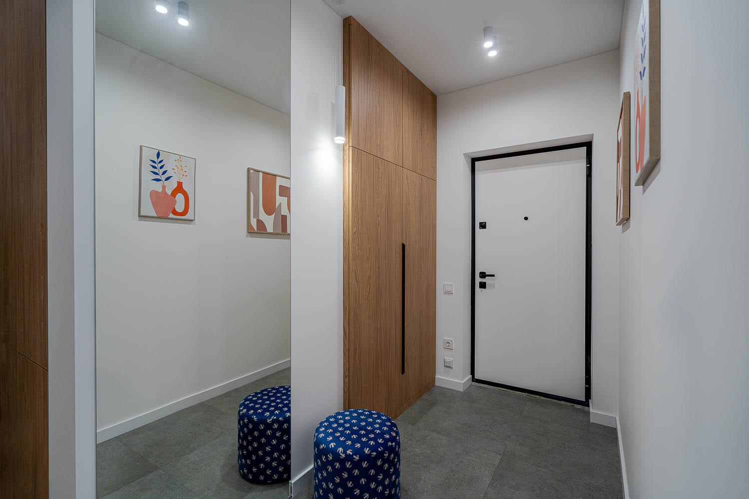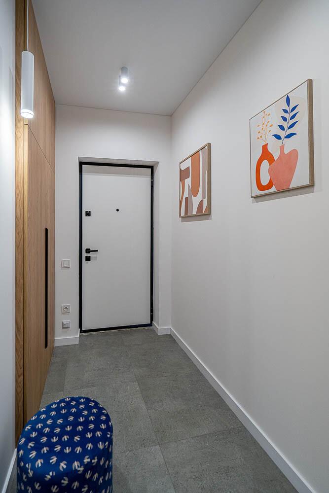 В этой квартире есть оригинальность и создана атмосфера, которая призвана привнести уют и функциональность. Интерьер выполнен преимущественно в светлых тонах. Вместе с тем много внимания уделено освещению, которое очень грамотно зонировано, а теплая палитра различных цветов в сочетании с деревом и яркими акцентами придает сочности и глубины. Предметов немного, но каждая деталь и аксессуар на своем месте и подобраны с любовью.
