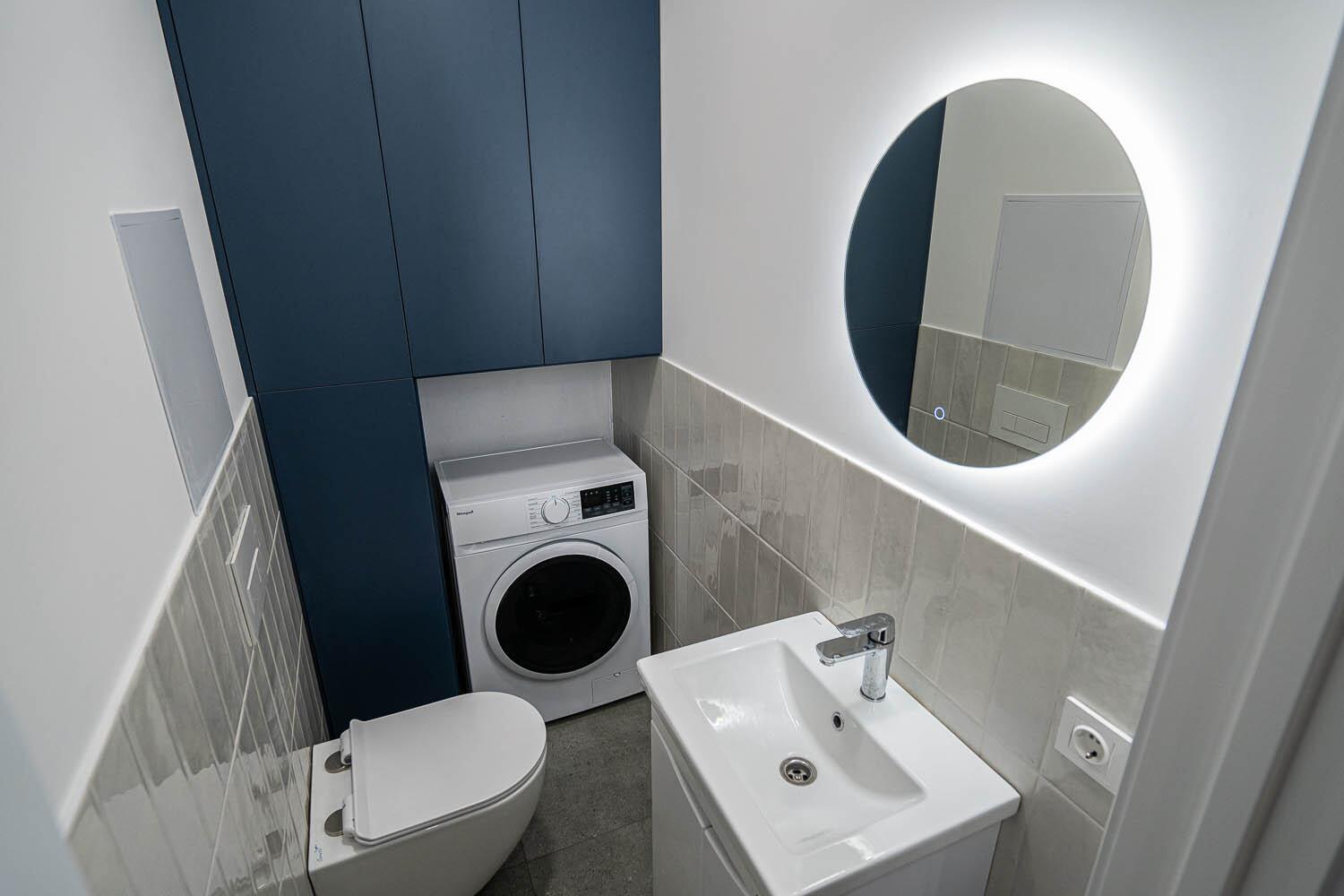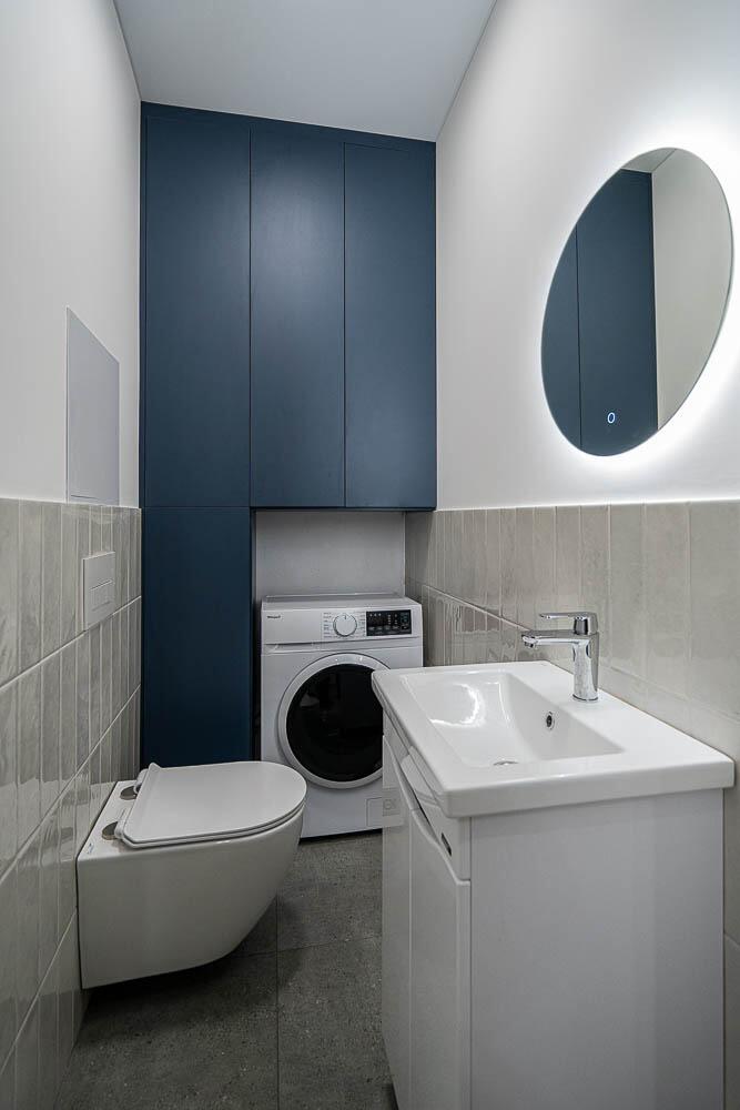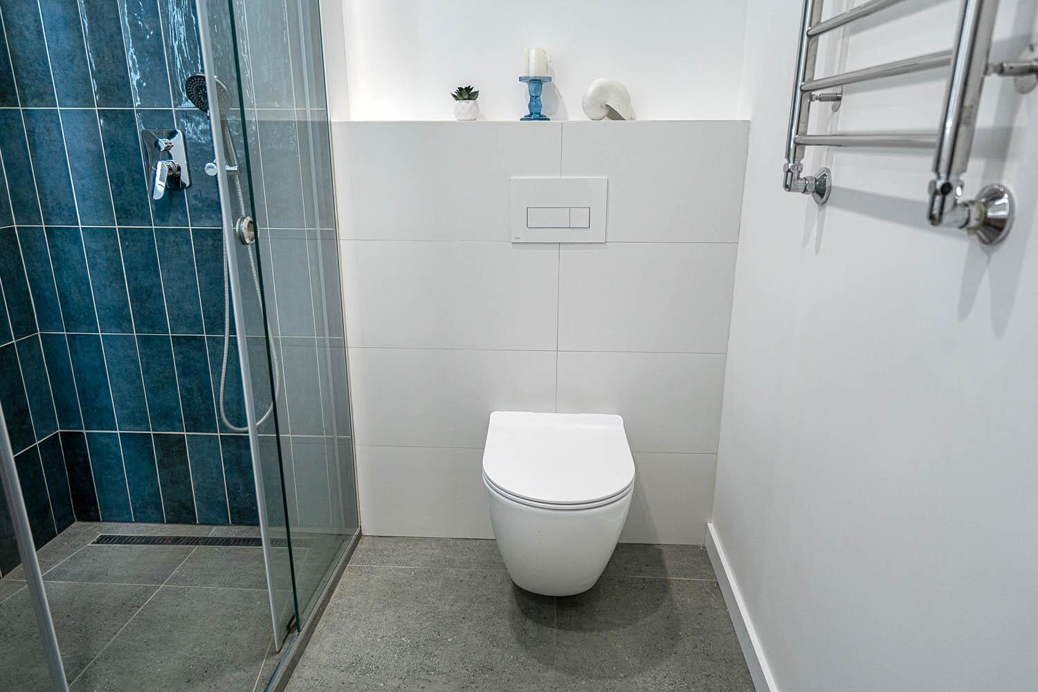 + Санузел раздельный, с подогревом пола. Уже оснащен стиральной машиной, а также импортной сантехникой, удобной душевой кабиной и различными режимами освещения. Предусмотрены места для хранения мелких принадлежностей;