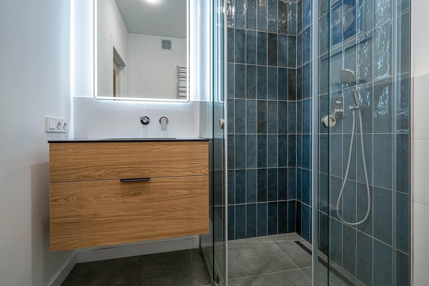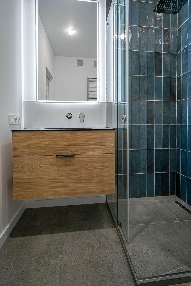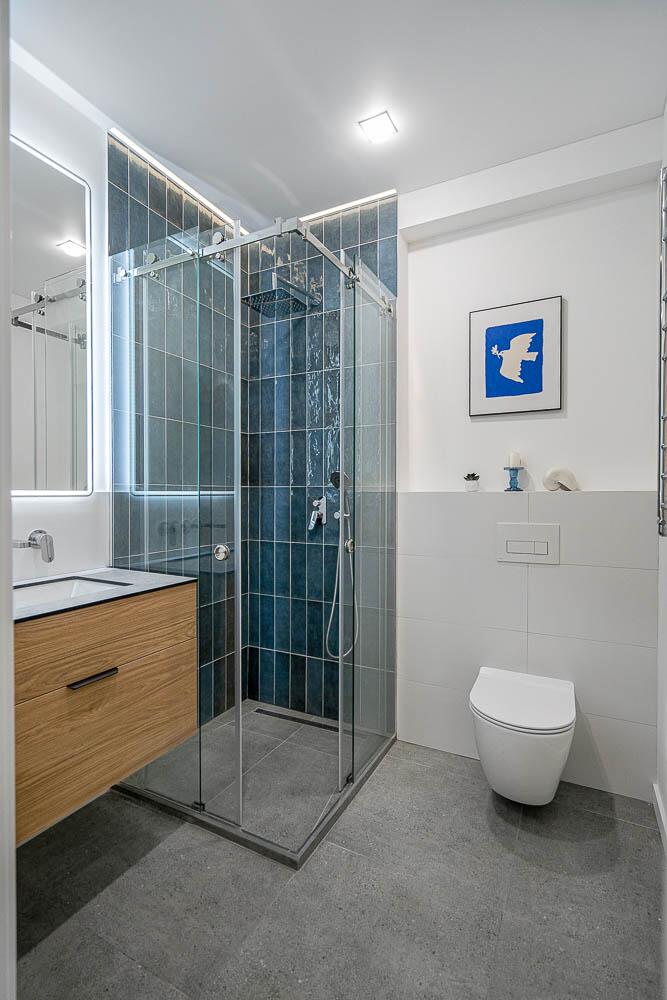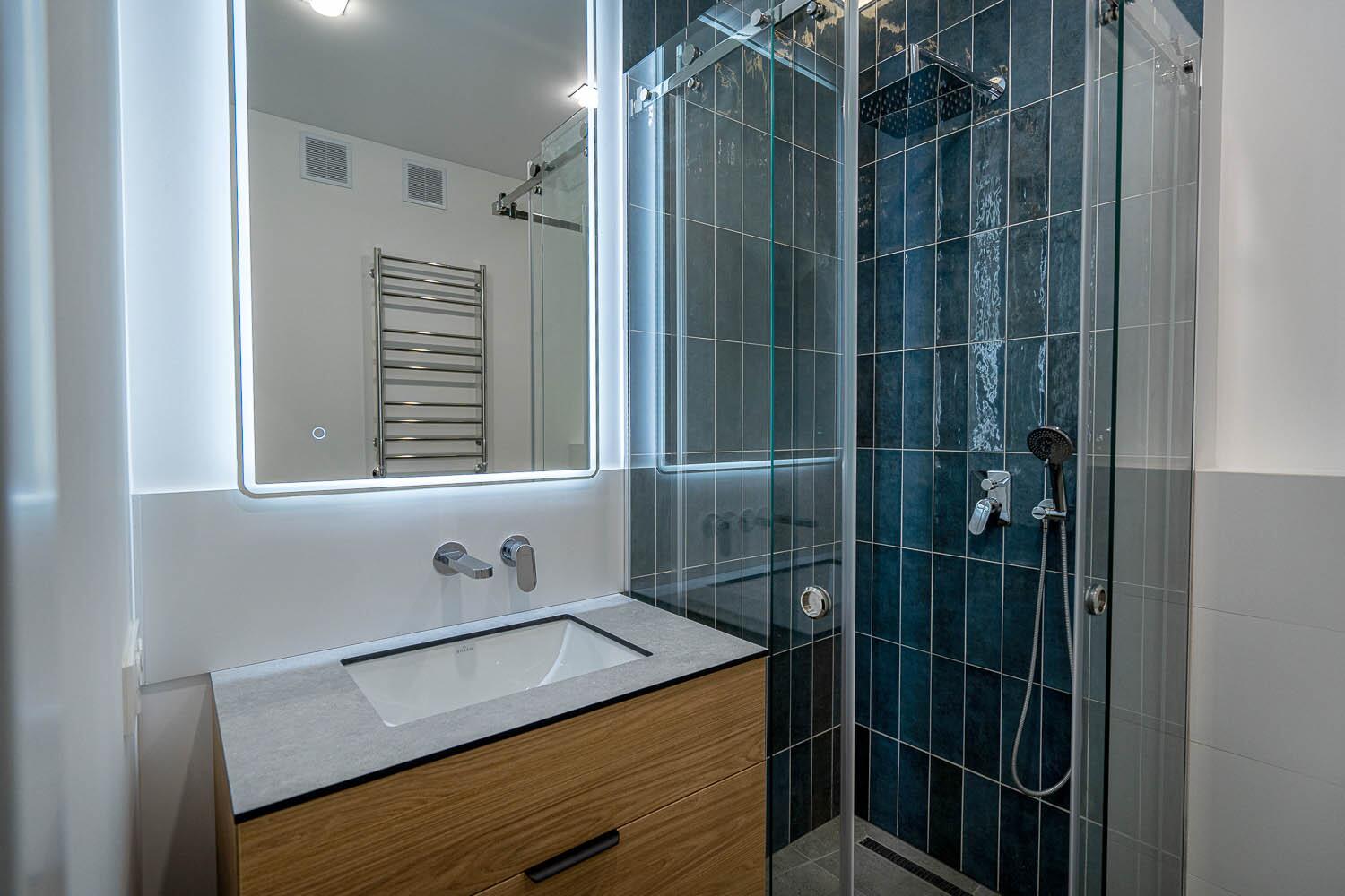 + Санузел раздельный, с подогревом пола. Уже оснащен стиральной машиной, а также импортной сантехникой, удобной душевой кабиной и различными режимами освещения. Предусмотрены места для хранения мелких принадлежностей;