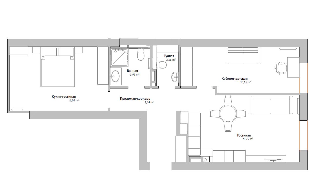 + одна из комнат не мебелирована, чтобы у Вас была возможность выбора: это детская, кабинет или место отдыха.
