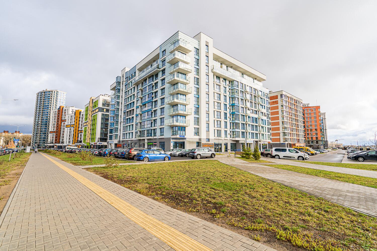 Квартира расположена в малоэтажном каркасно-блочном доме, который был сдан в 2024 году в новом и расположен в самом «сердце» современного жилого комплекса «Минск-Мир». Это идеальное место для тех, кто любит, чтобы всё было под рукой: достаточное количество парковочных мест, в пешей доступности множество кофеен, магазинчиков и различных активностей; современные детские площадки на территории придомовой территории; в пешей доступности станция метро «Аэродромная» и прямо у дома ТЦ «Авиа Молл».