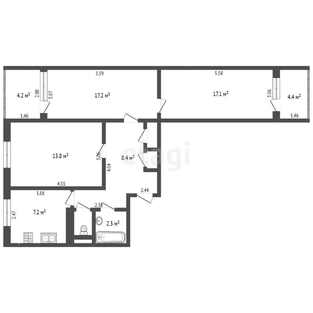Общая площадь по СНБ 67,9 кв.м.. Высота потолков - 2,55 м.
