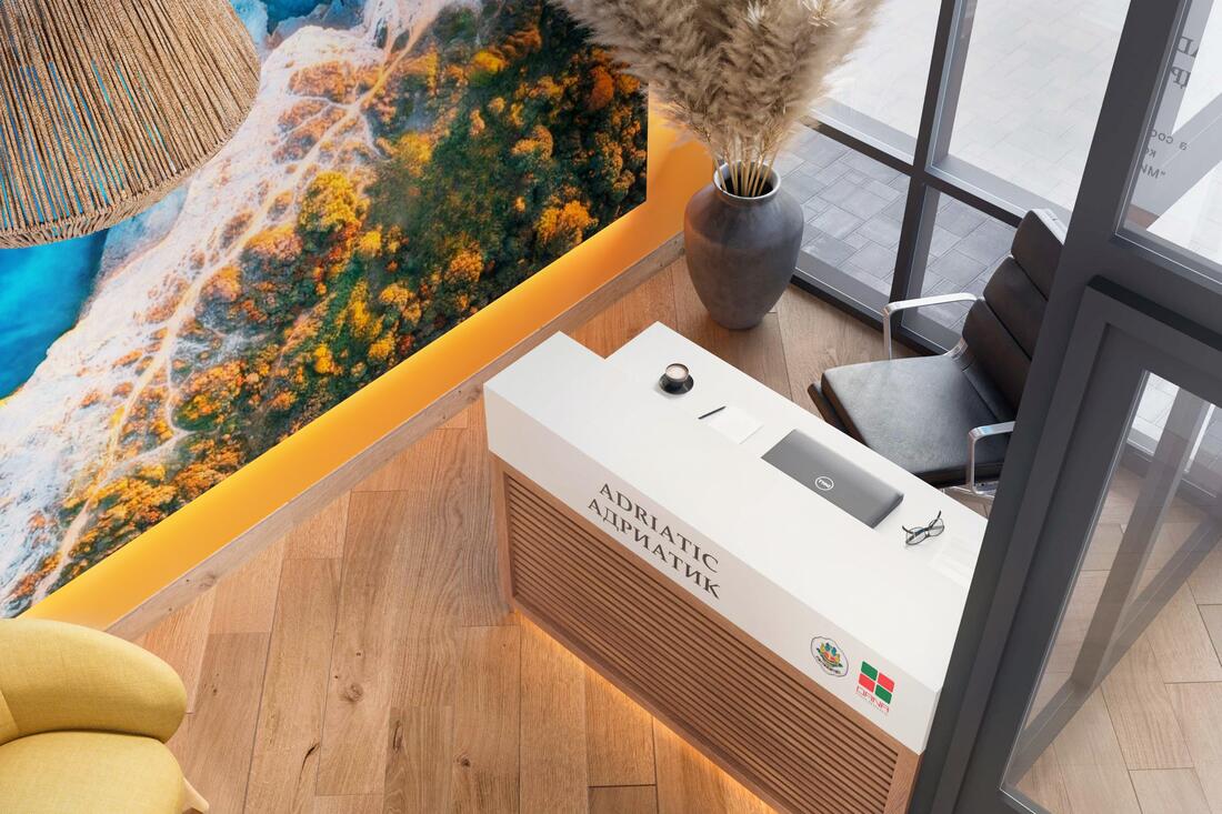 Лобби со стойкой консьержа и местом ожидания/отдыха гостей.