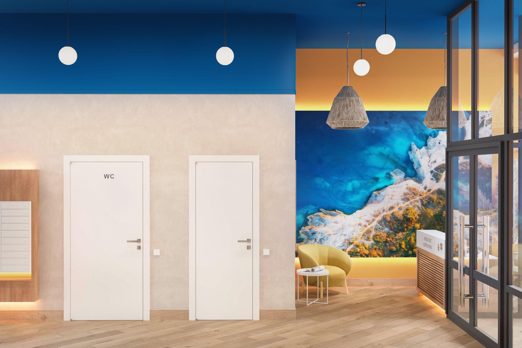 Лобби со стойкой консьержа и местом ожидания/отдыха гостей.