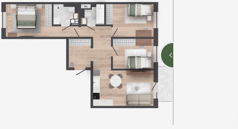 Продуманные планировки: Уникальные квартиры с личными террасами и участками на первом этаже, а также квартиры с мастер-спальнями, гардеробными и кабинетом. Кроме того, для каждой квартиры предусмотрена кладовая в техническом подполье, а для некоторых — кладовые на этажах.