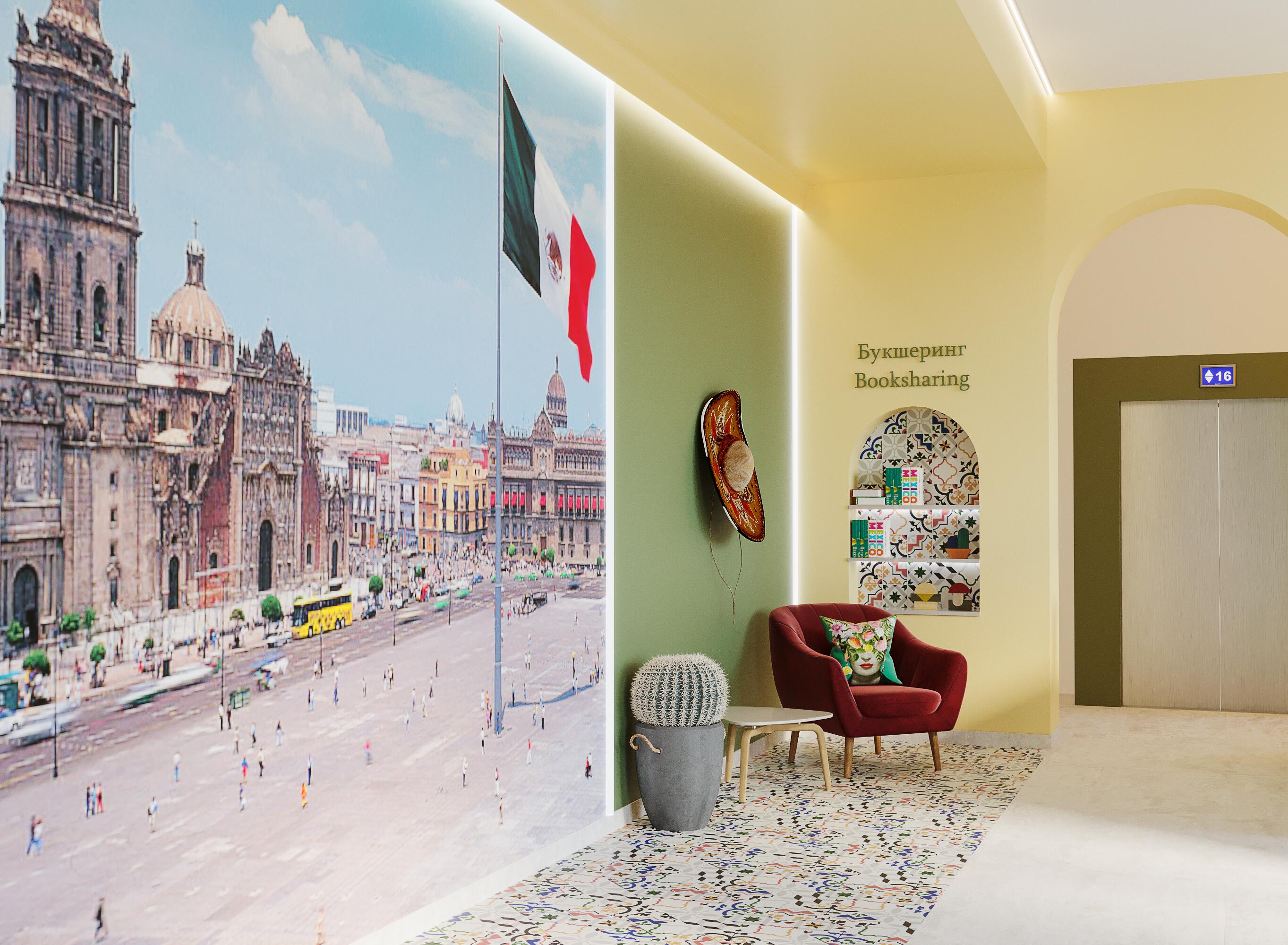 На первом этаже домов располагается лобби с уникальным дизайном и место для консьержа.