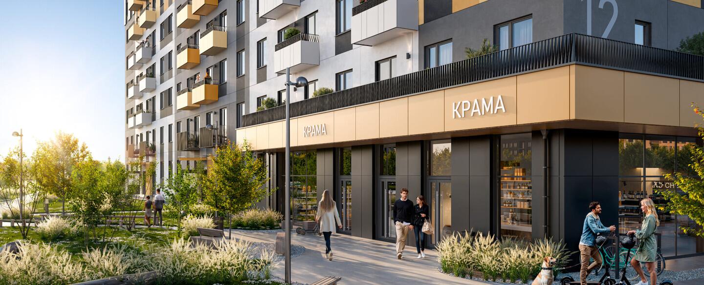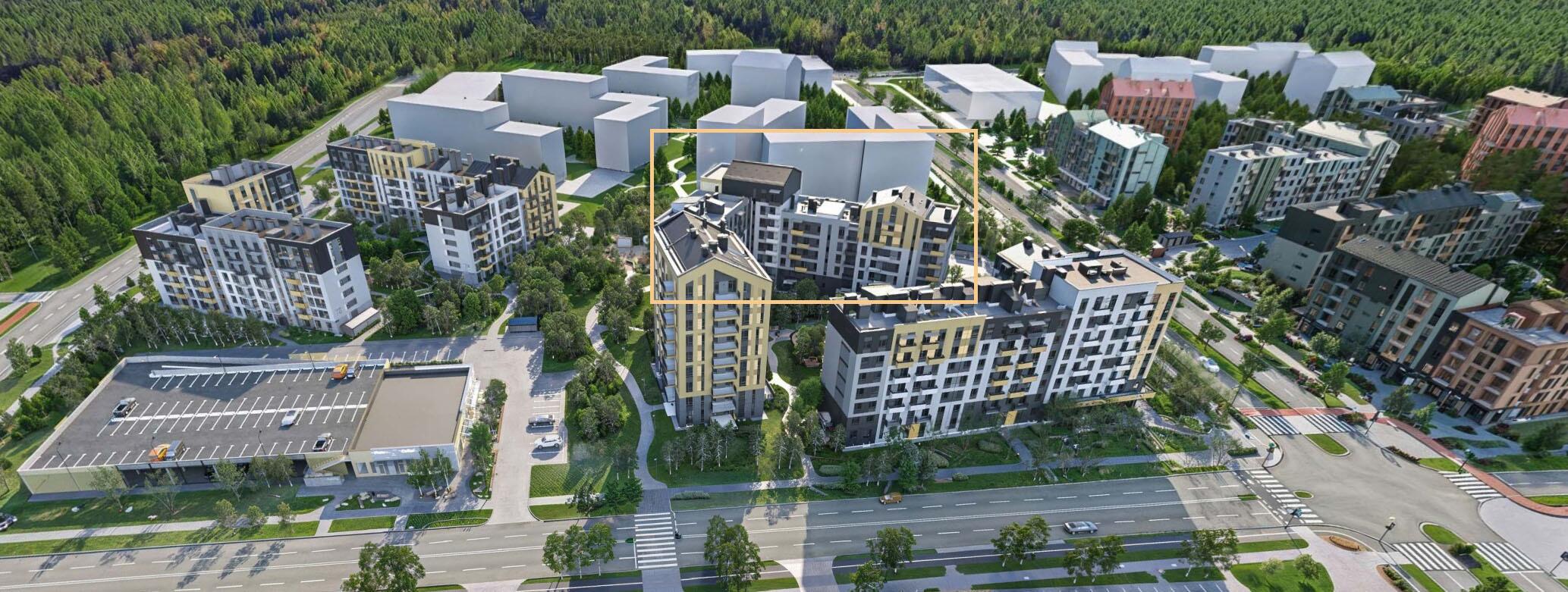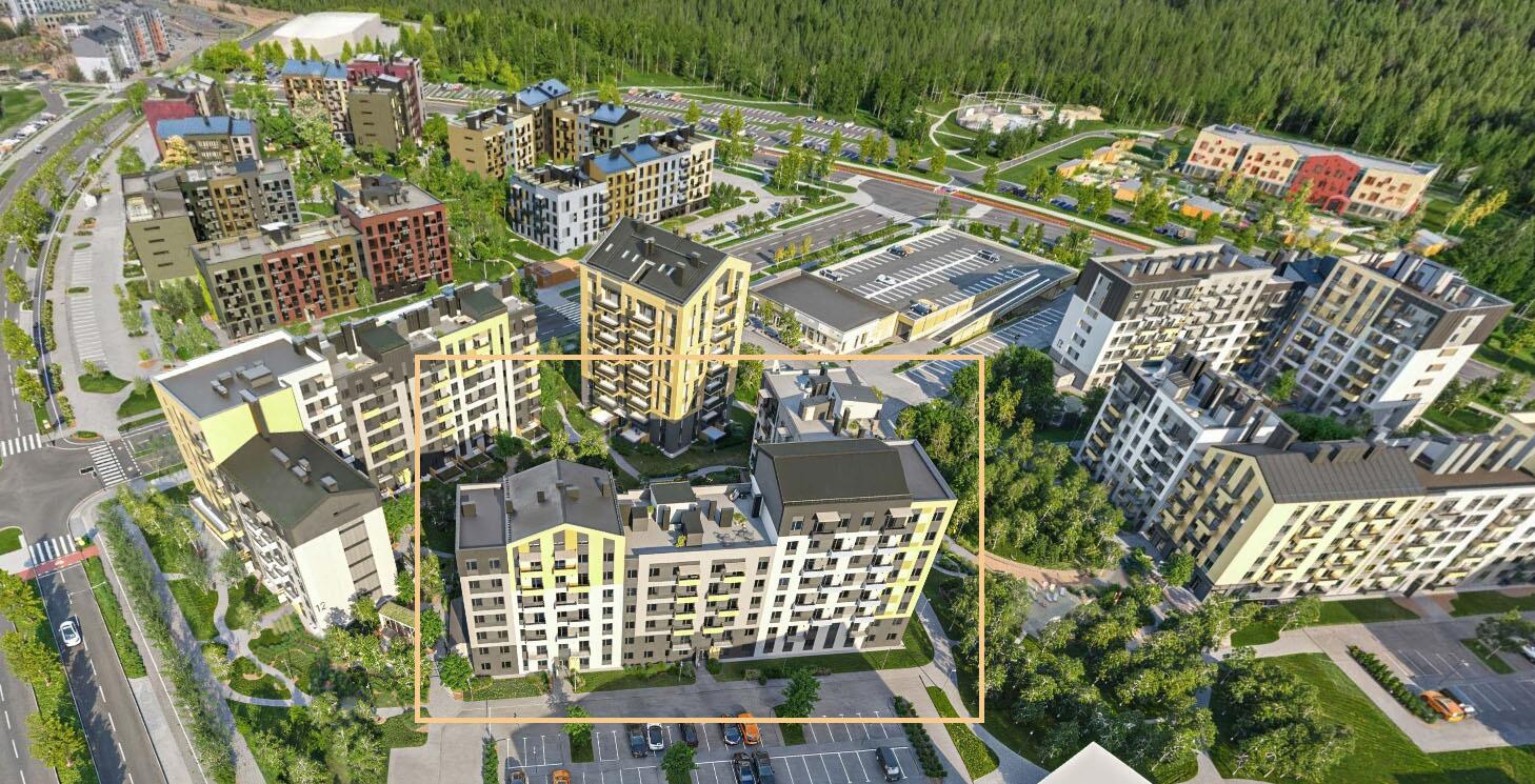 - В шаговой доступности: магазины, тренажерный зал, кофейни, рестораны, детский сад. Школа откроется в 2028г.