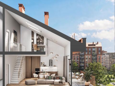 - Высота потолков в квартирах с мансардой переменная - до 7,7 м.