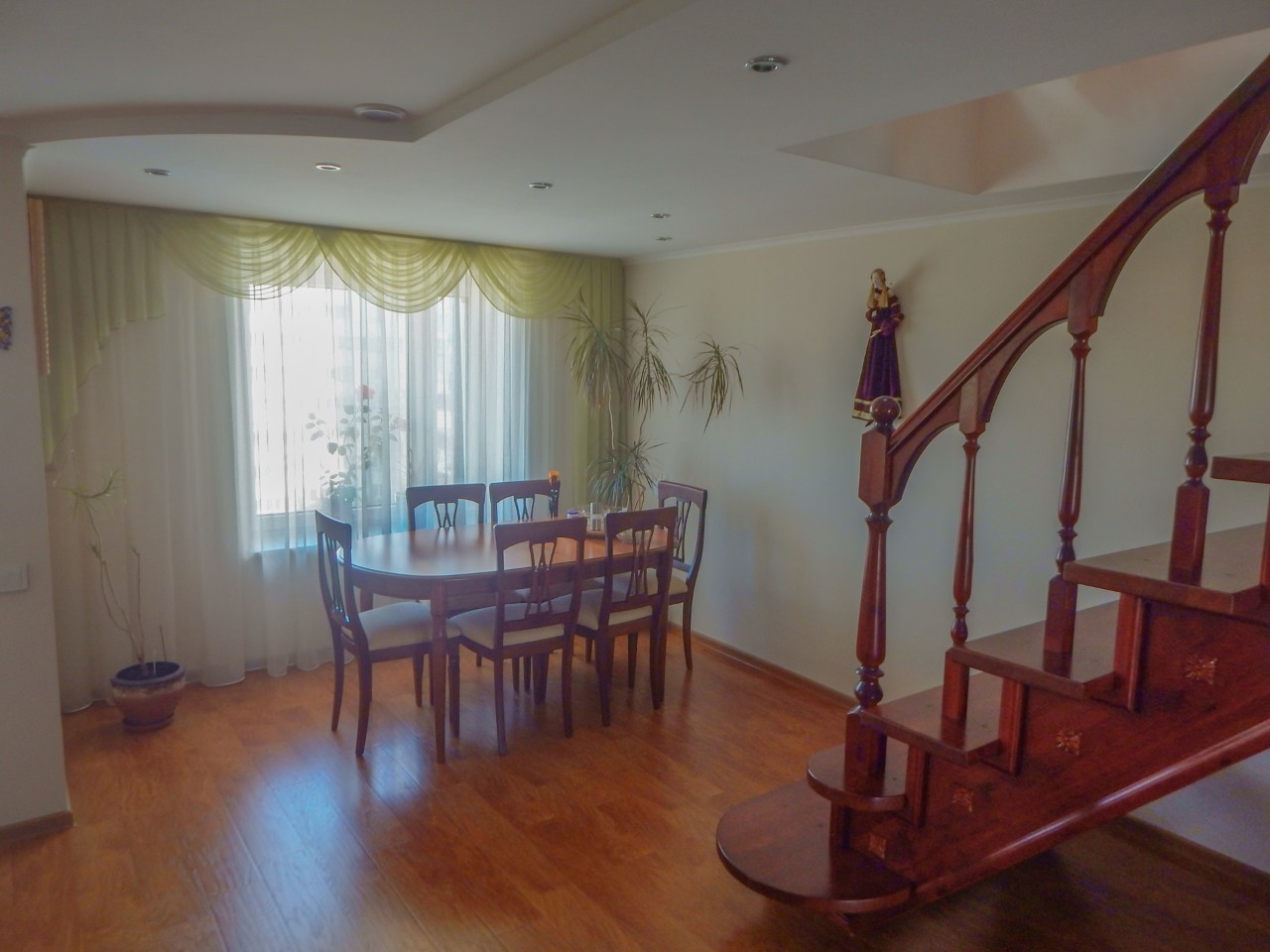 Квартира двухуровневая, расположена на 5 и 6 этажах 6 этажного кирпичного дома 2000 года постройки. Толстые стены, железобетонные перекрытия, хорошая звукоизоляция. В квартире тепло зимой и не жарко летом.