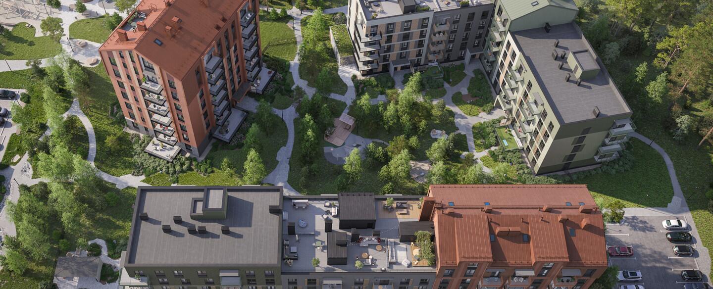 - Благоустройство зеленого коридора в соседстве с другими ситихаусами – это большая зона для игр.
