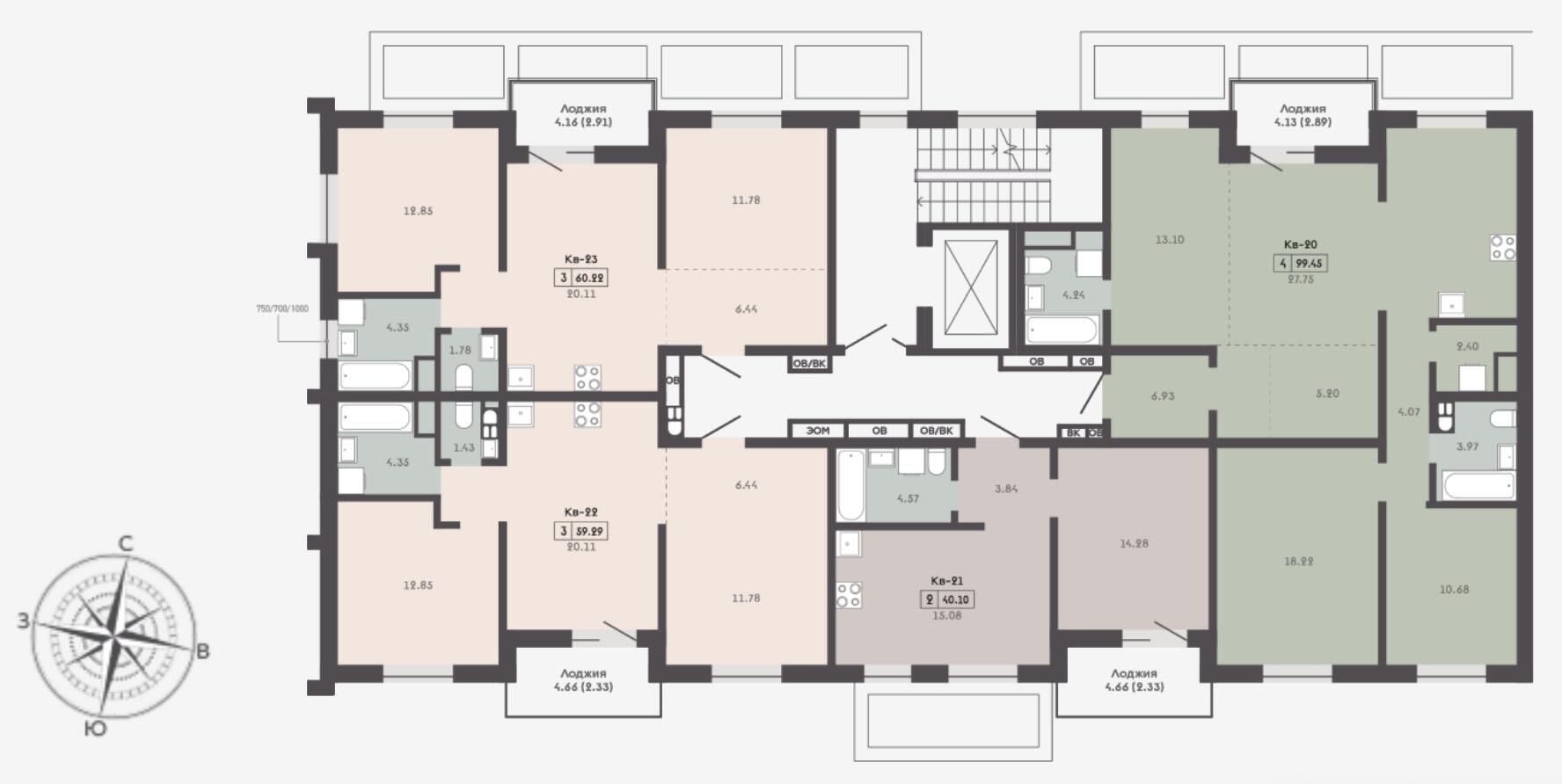 - Комбинация из открытых и остекленных лоджий.