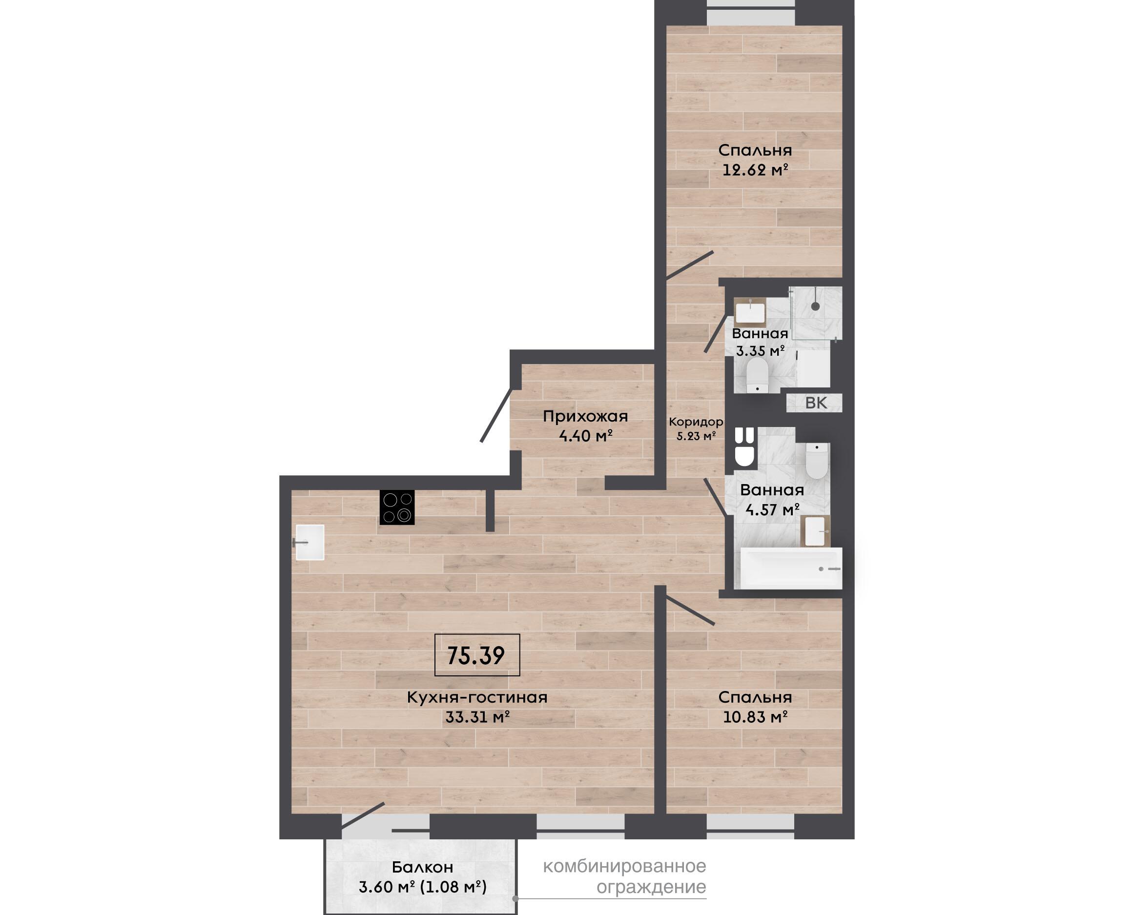 3-комнатная квартира с современной планировкой в новом Ситихаус 7.9 - идеальный вариант для комфортной жизни рядом с природой и всей необходимой инфраструктурой.