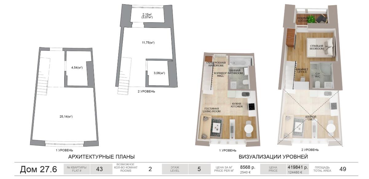 -Антресольный этаж: Каждая квартира имеет антресоль — дополнительный уровень, который идеально подходит для организации кабинета, спальни или мини-спа-зоны. Площадь антресоли не превышает 40% от площади основного помещения.