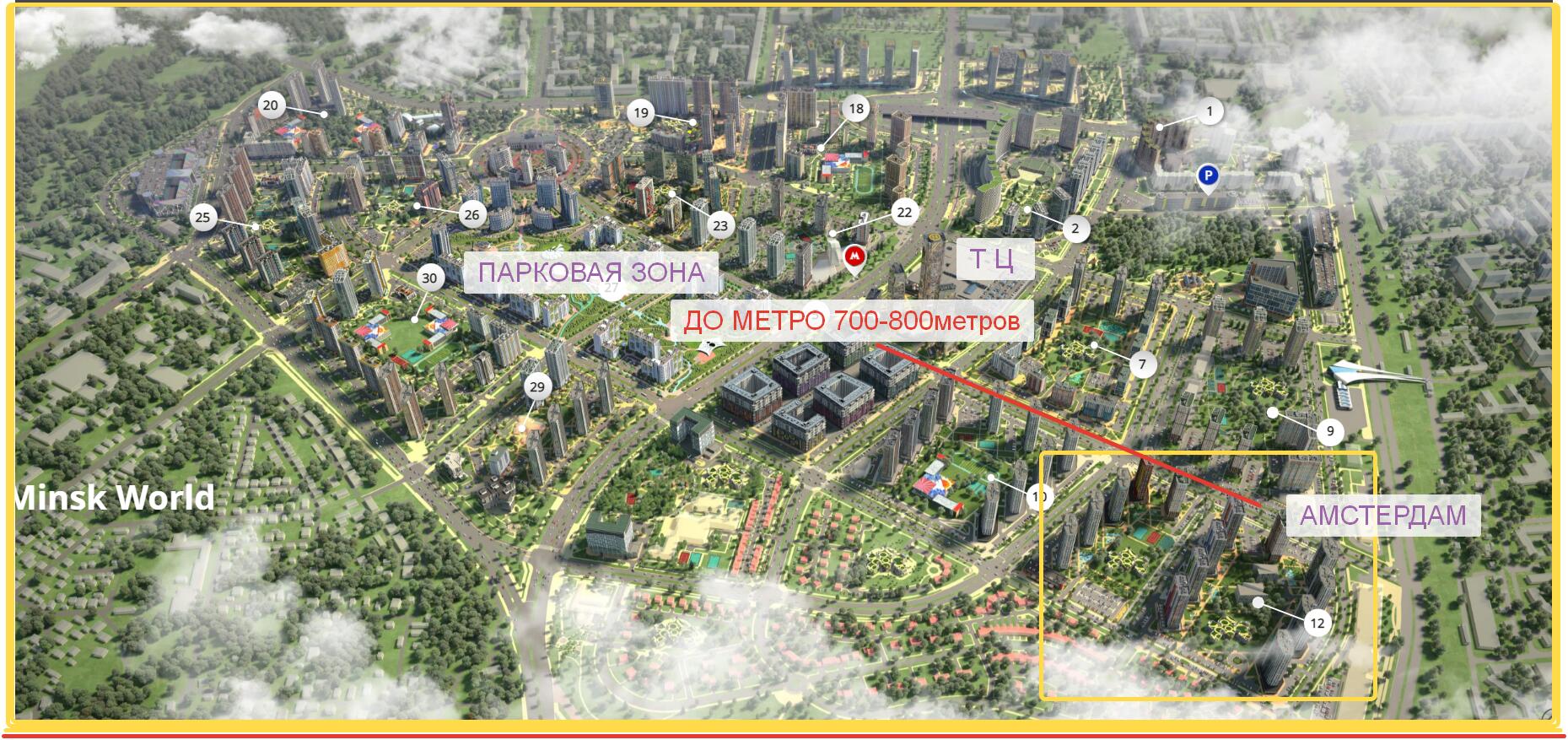 Минск мир - яркий пример строительства по концепции «15-минутного города», которая стала основой для создания Minsk World. Она только набирает популярность в Европе и уже реализуется в Беларуси! Всё, что нужно для жизни будет в пешей или велосипедной доступности