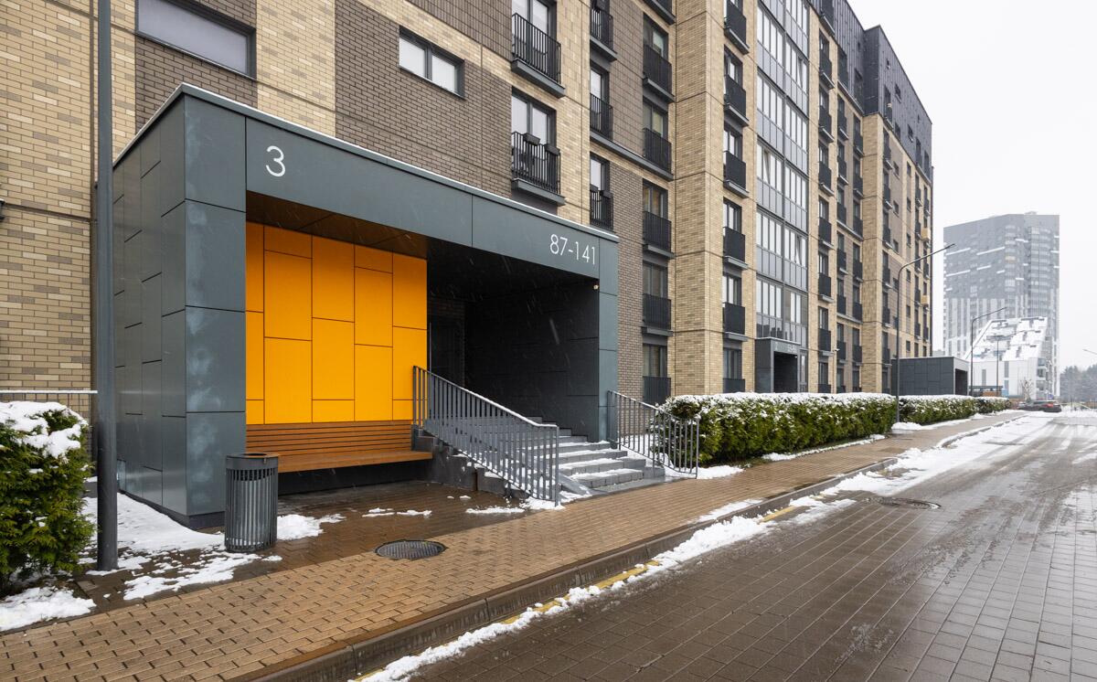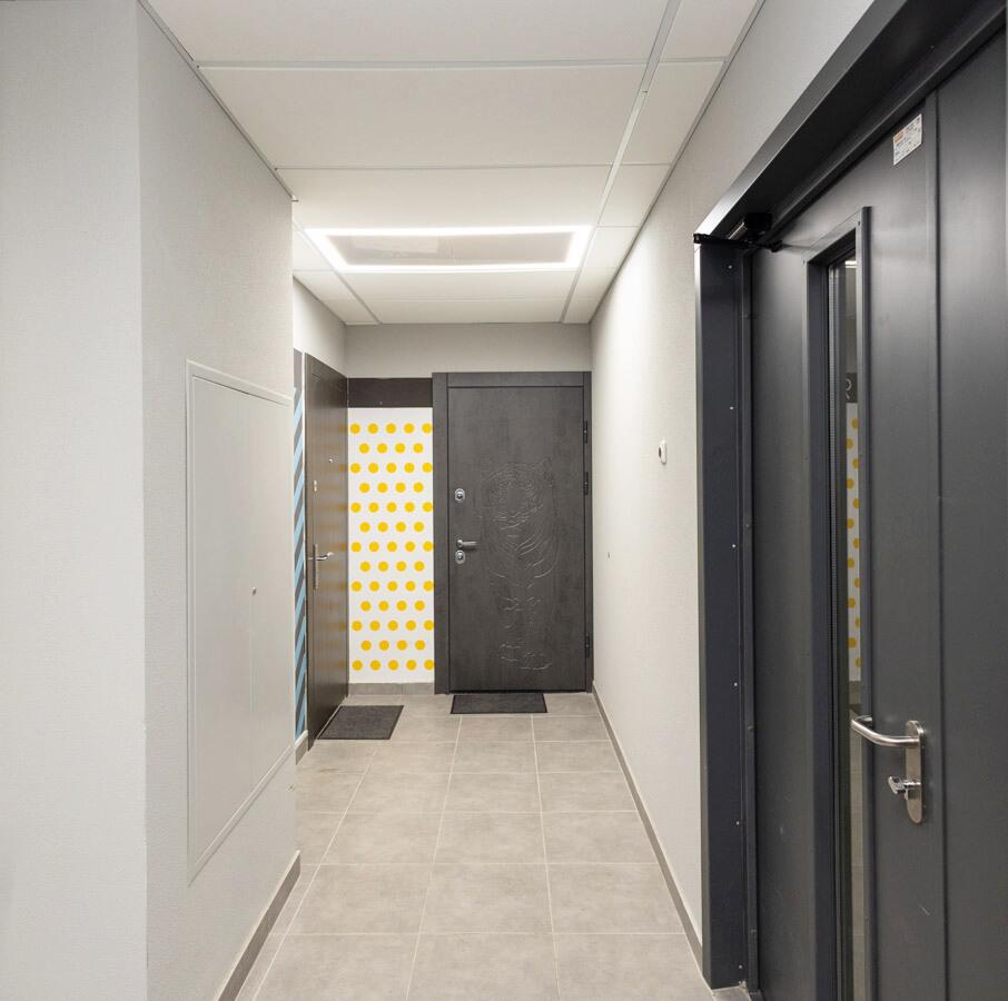 Современная входная группа в доме, видеонаблюдение по всему периметру ЖК, закрытая территория – въезд под шлагбаум! Возле дома оборудован детский городок.