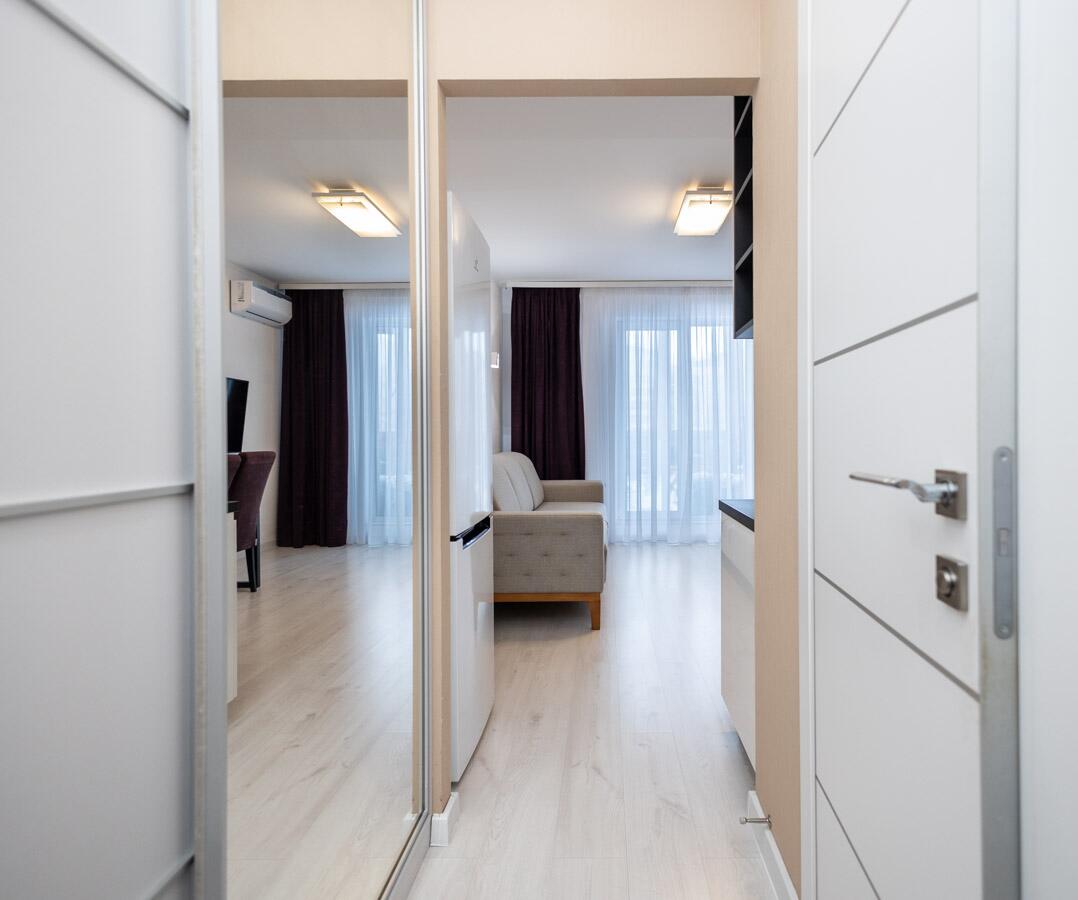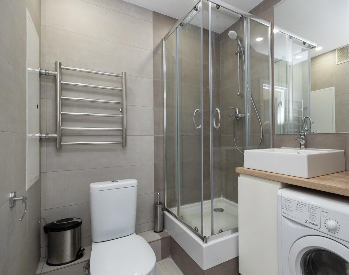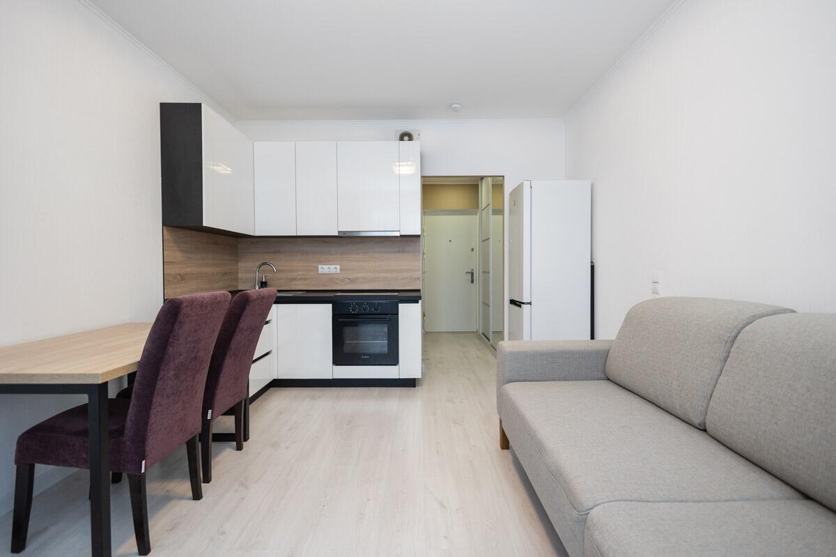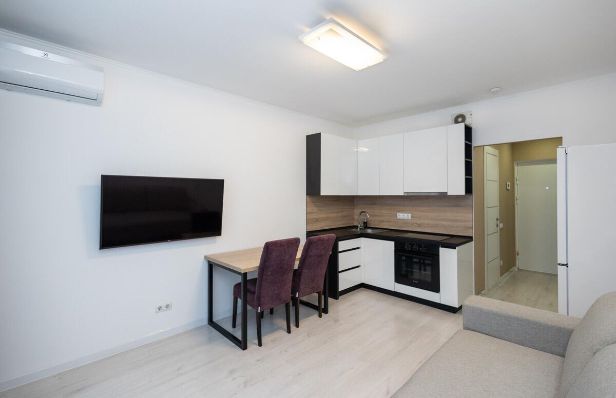 Кухне со всей необходимой мебелью и техникой: холодильник, духовой шкаф, вытяжка, варочная панель, обеденный стол. Просторный совмещенный санузел с душевой кабиной, стиральной машиной — всё для комфортной жизни. В коридоре — вместительный шкаф-купе с зеркалом во весь рост. Установлен кондиционер – свежесть и комфорт круглый год!