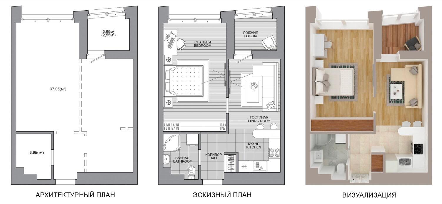 Жилая площадь 37.06 м²