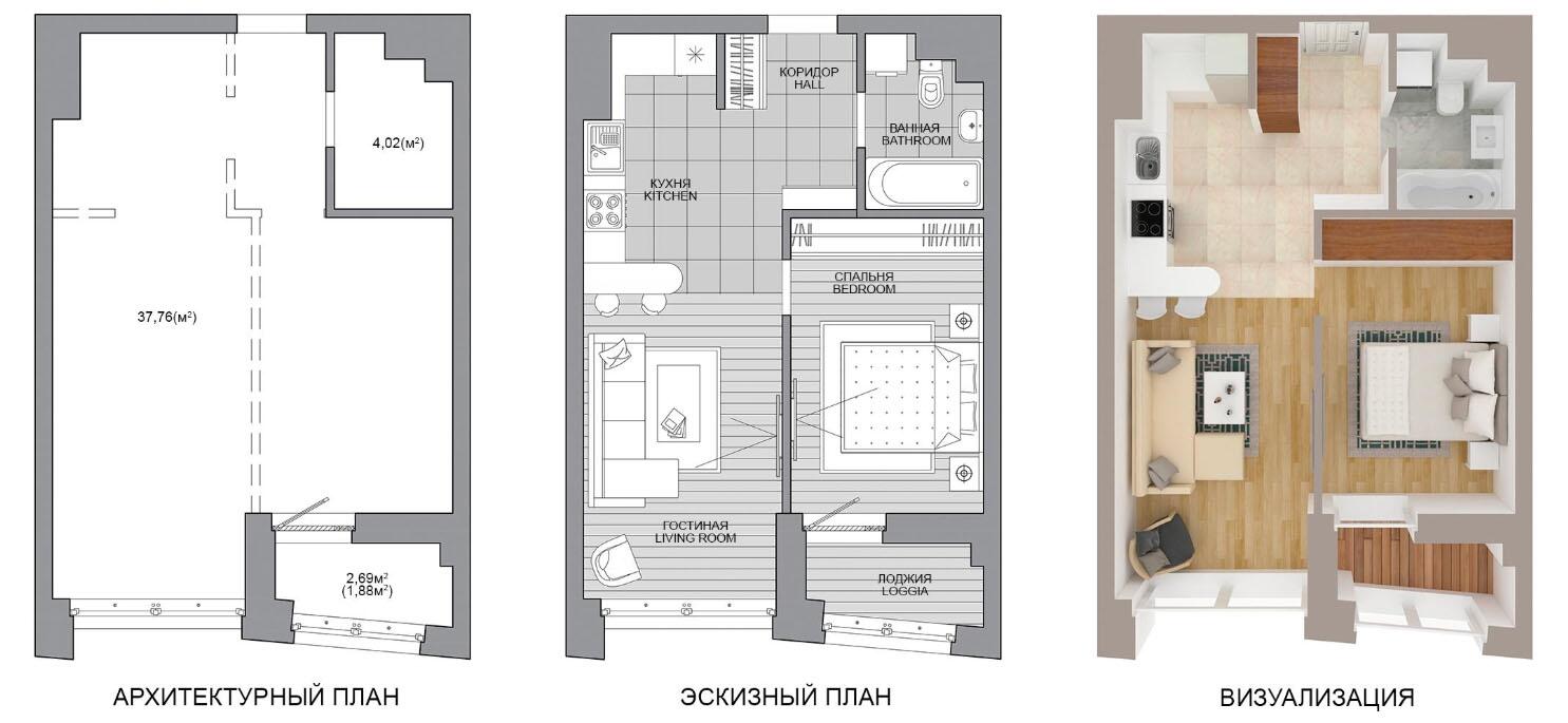 Жилая площадь 37.76 м²