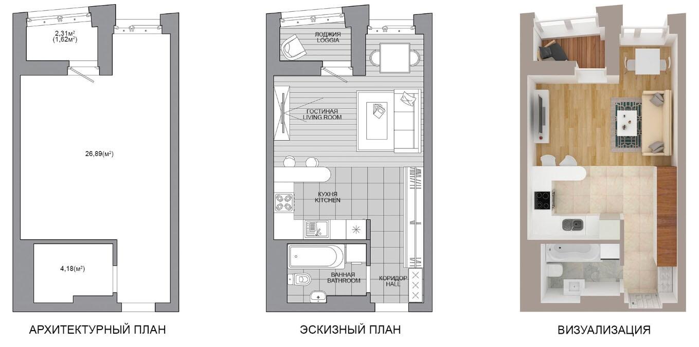Жилая площадь 25.67 м²