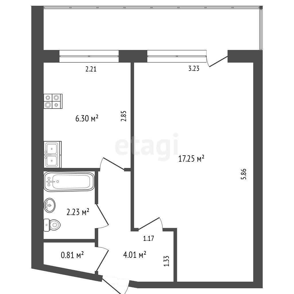 · Комната 17,25 м2 — просторная и светлая, позволяет грамотно зонировать пространство: выделить спальню и гостиную, создать уютный кабинет или гардероб.