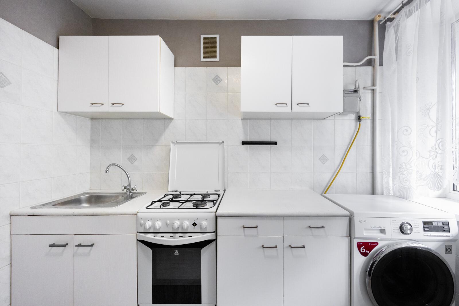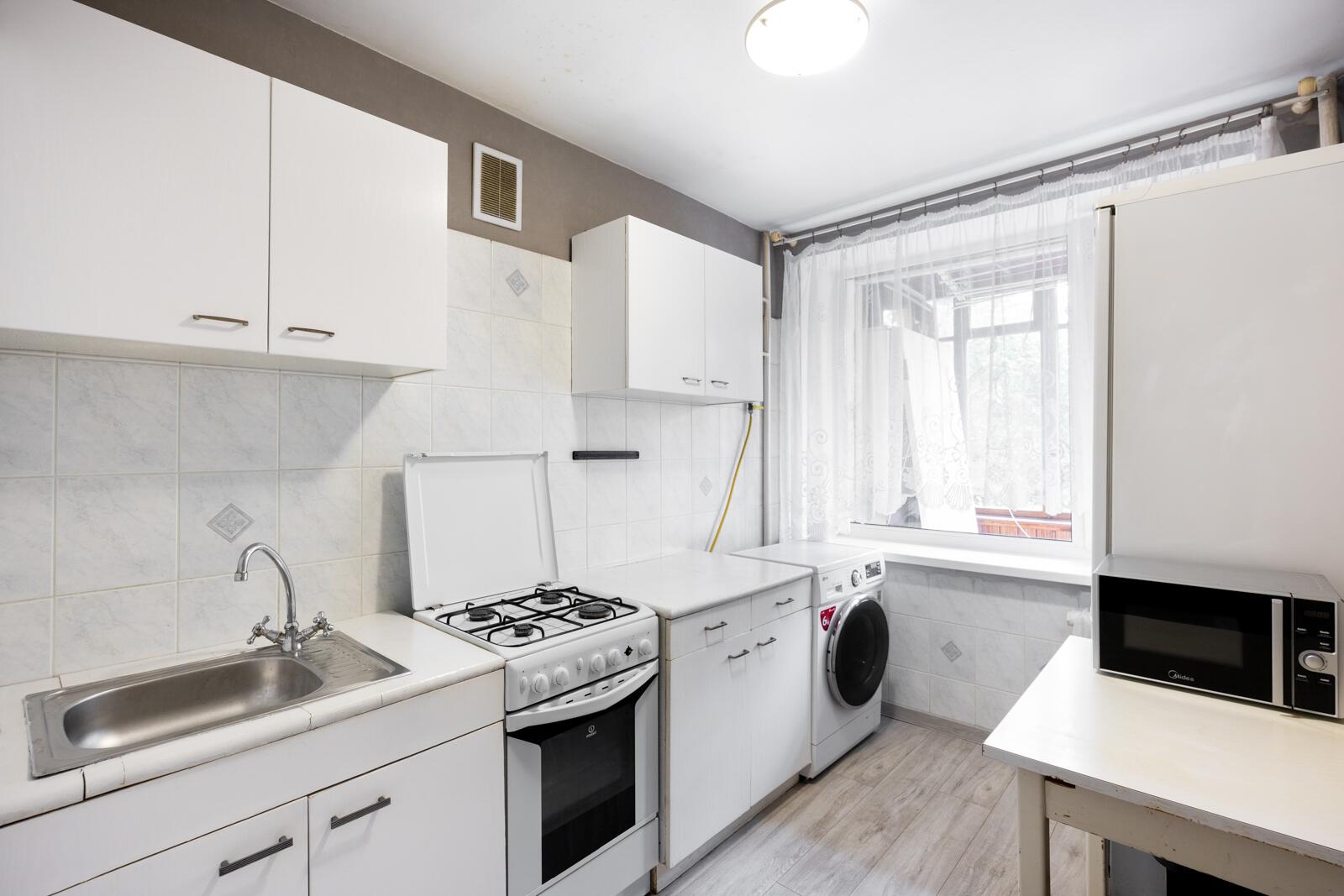 · Кухня 6,3 м2 — правильной формы, есть всё необходимое для готовки и обеденной зоны.