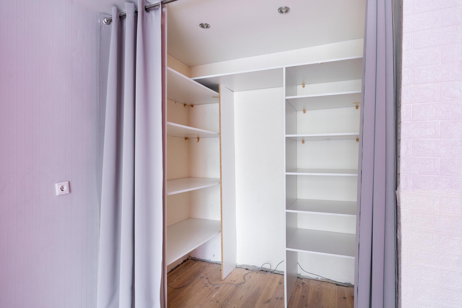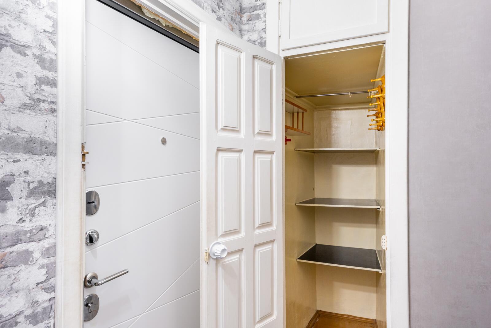 · Гардеробная — практичное решение для хранения вещей. При желании можно переделать в рабочее место или отдельную спальню.