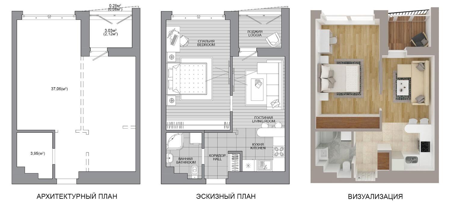 Жилая площадь 37.06 м²