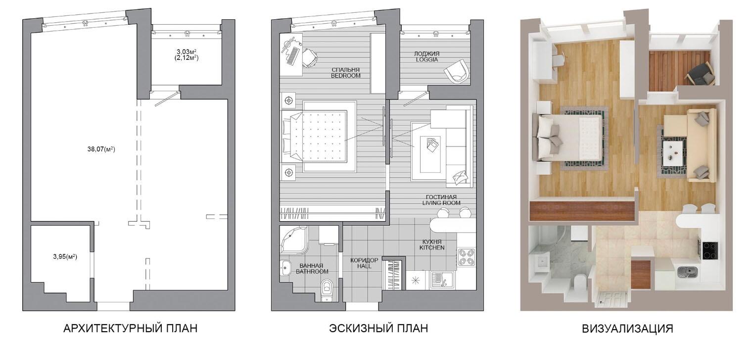 Жилая площадь 38.07 м²